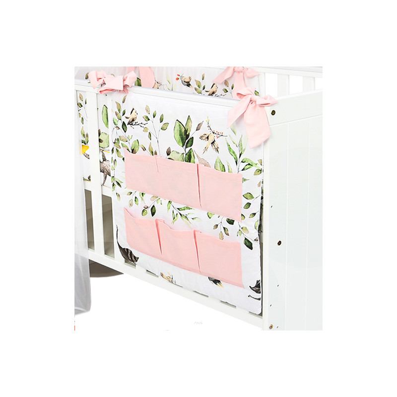 Przybornik na łóżeczko "Nature and Flowers" (sarenka zielona +pudrowy róż)