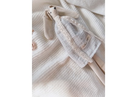 Wykonana z wysokogatunkowych i certyfikowanych tkanin -muślinu bawełnianego, velvetu oraz bawełnianej koronki.