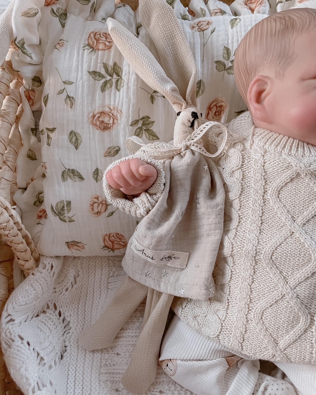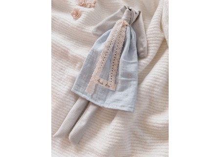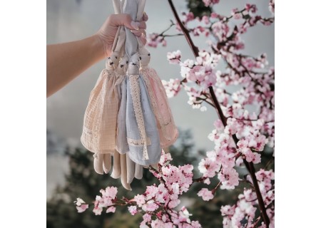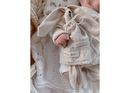 Przytulanka posiada długie uszy idealnie dopasowujące się do małej rączki niemowlaka.