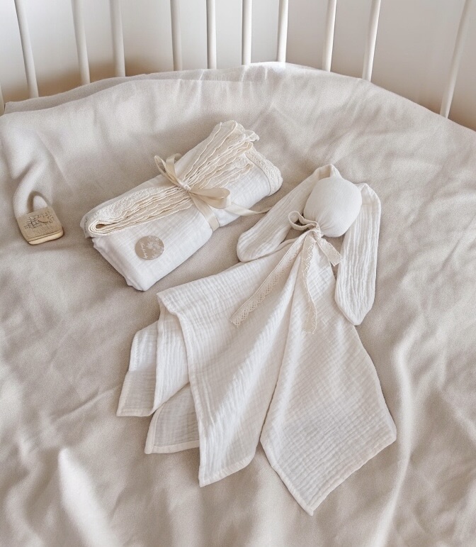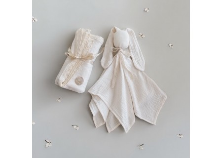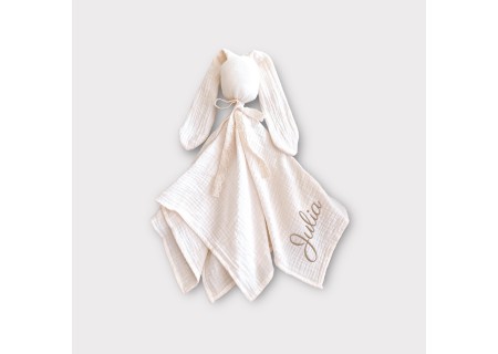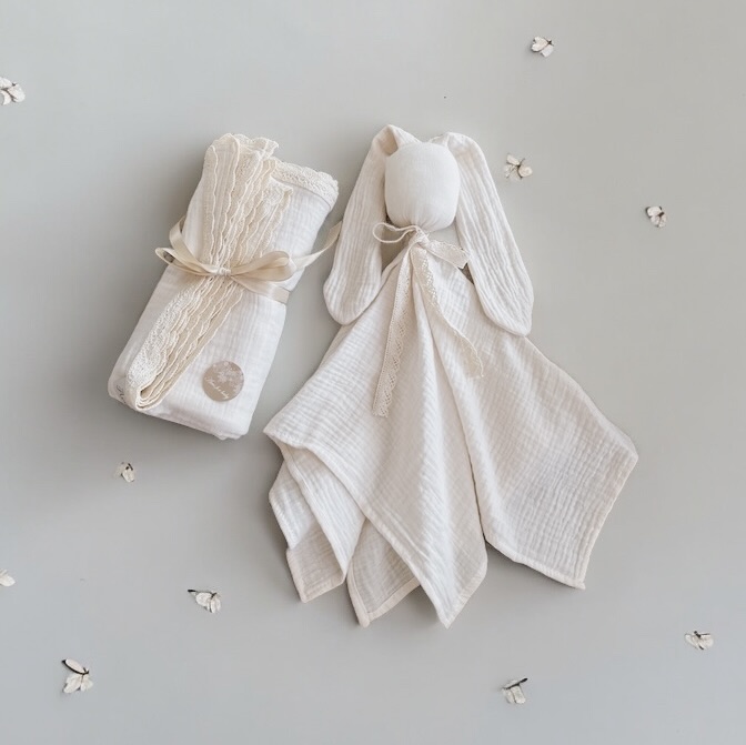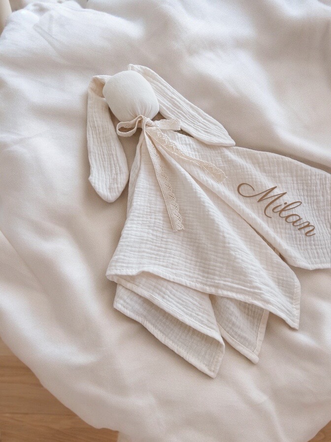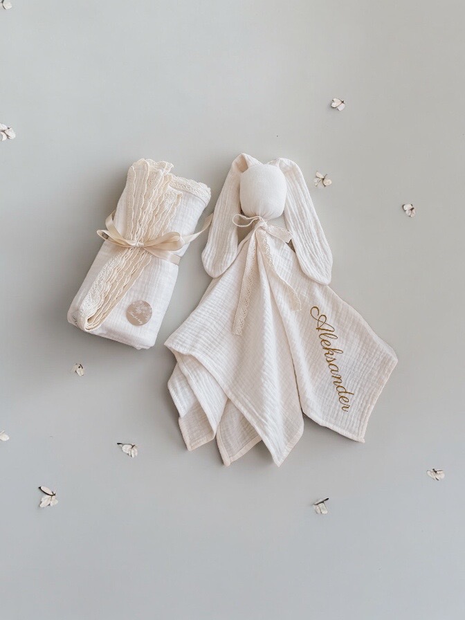 Pierwsza przytulanka muślinowa BUNNY handmade