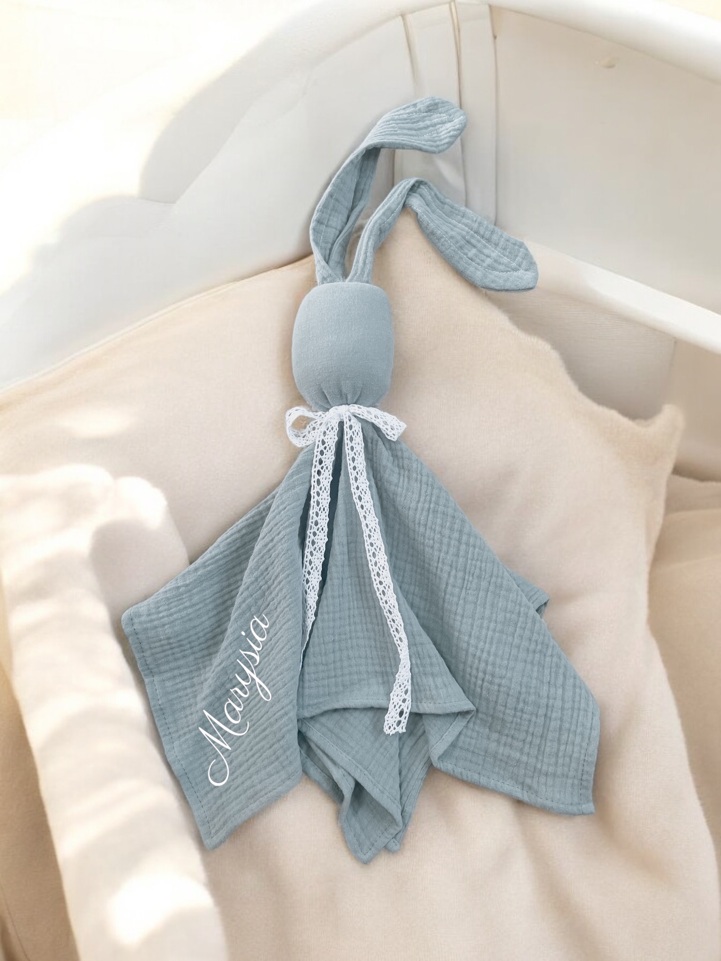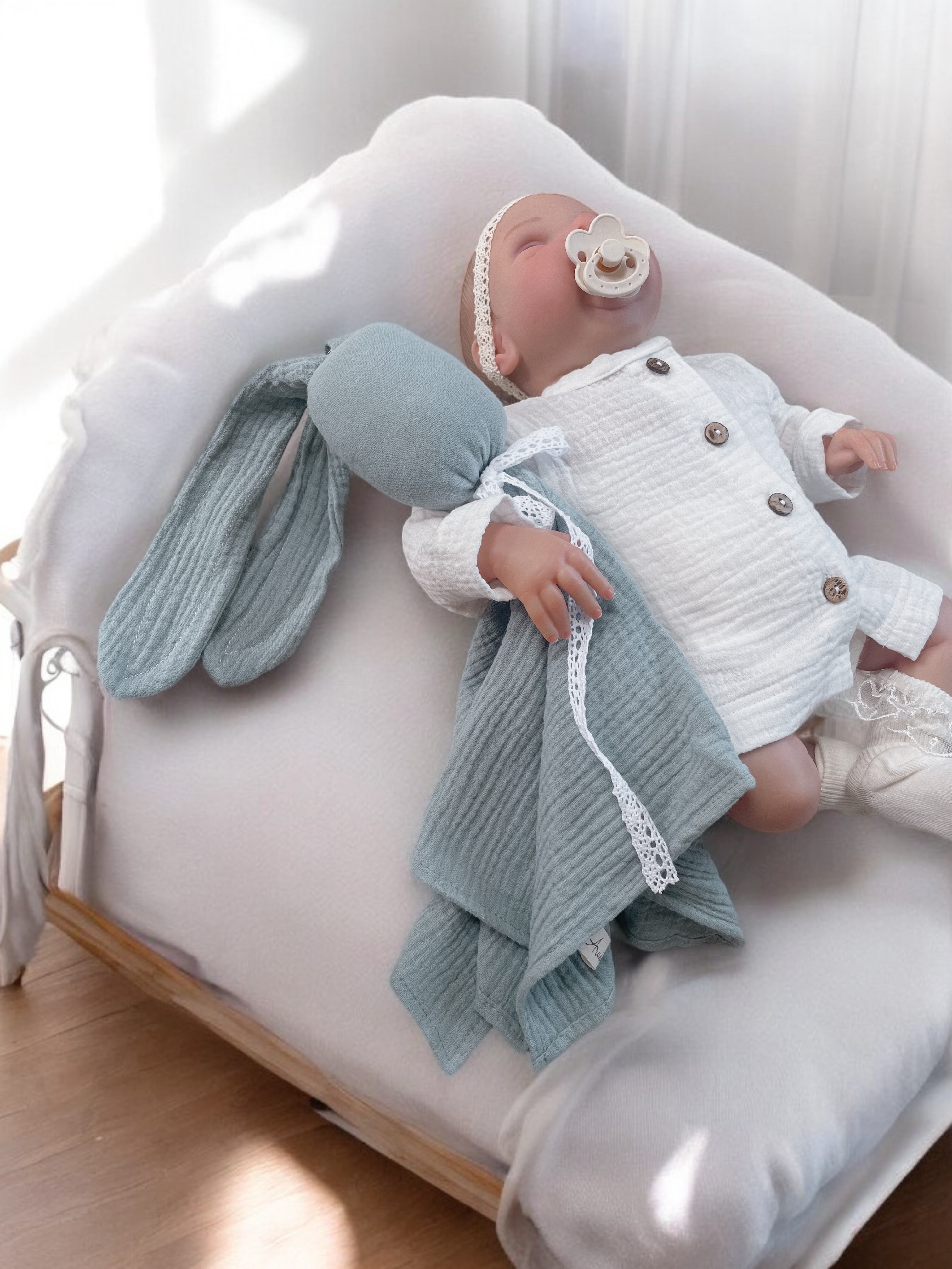 Pierwsza przytulanka muślinowa BUNNY handmade
