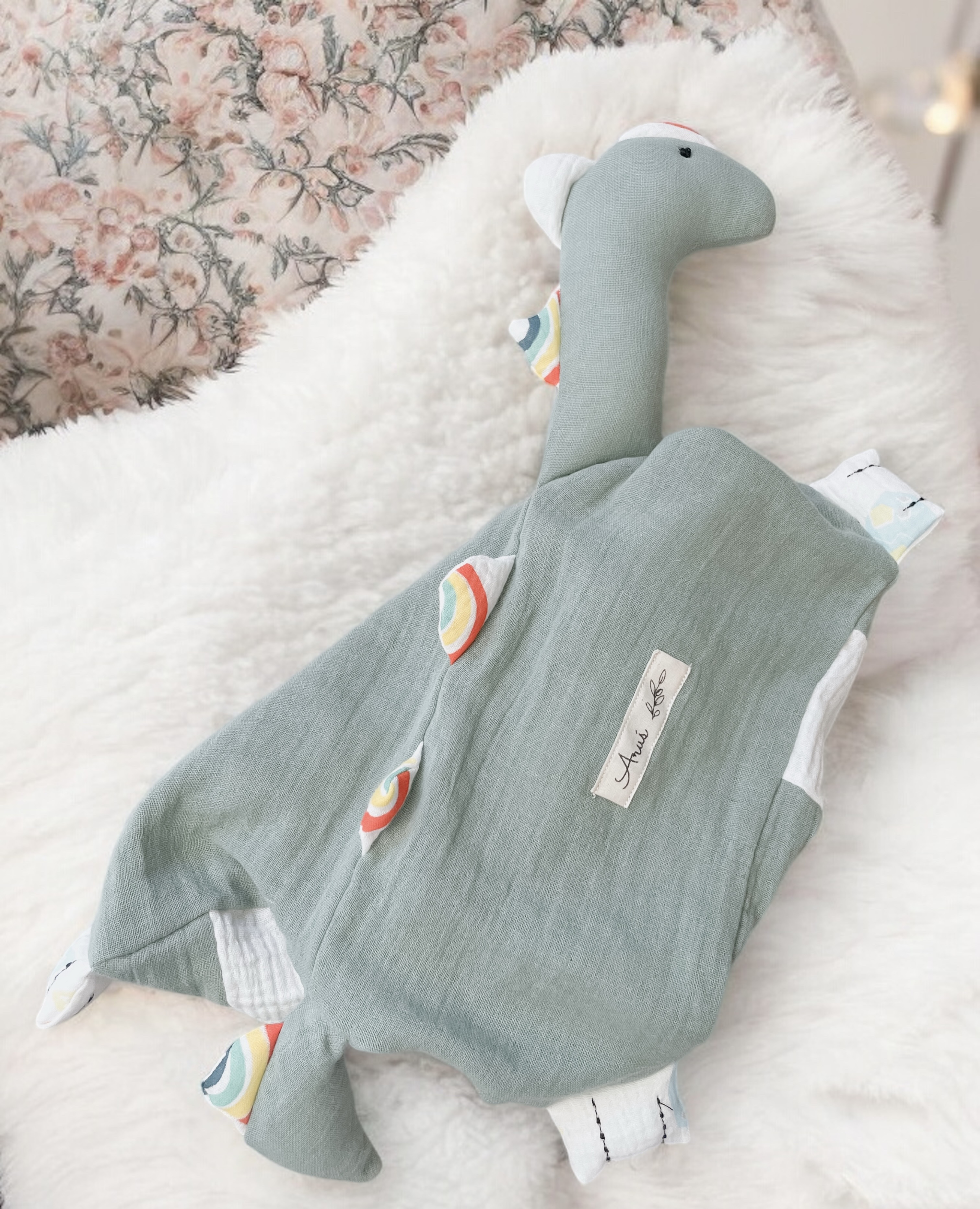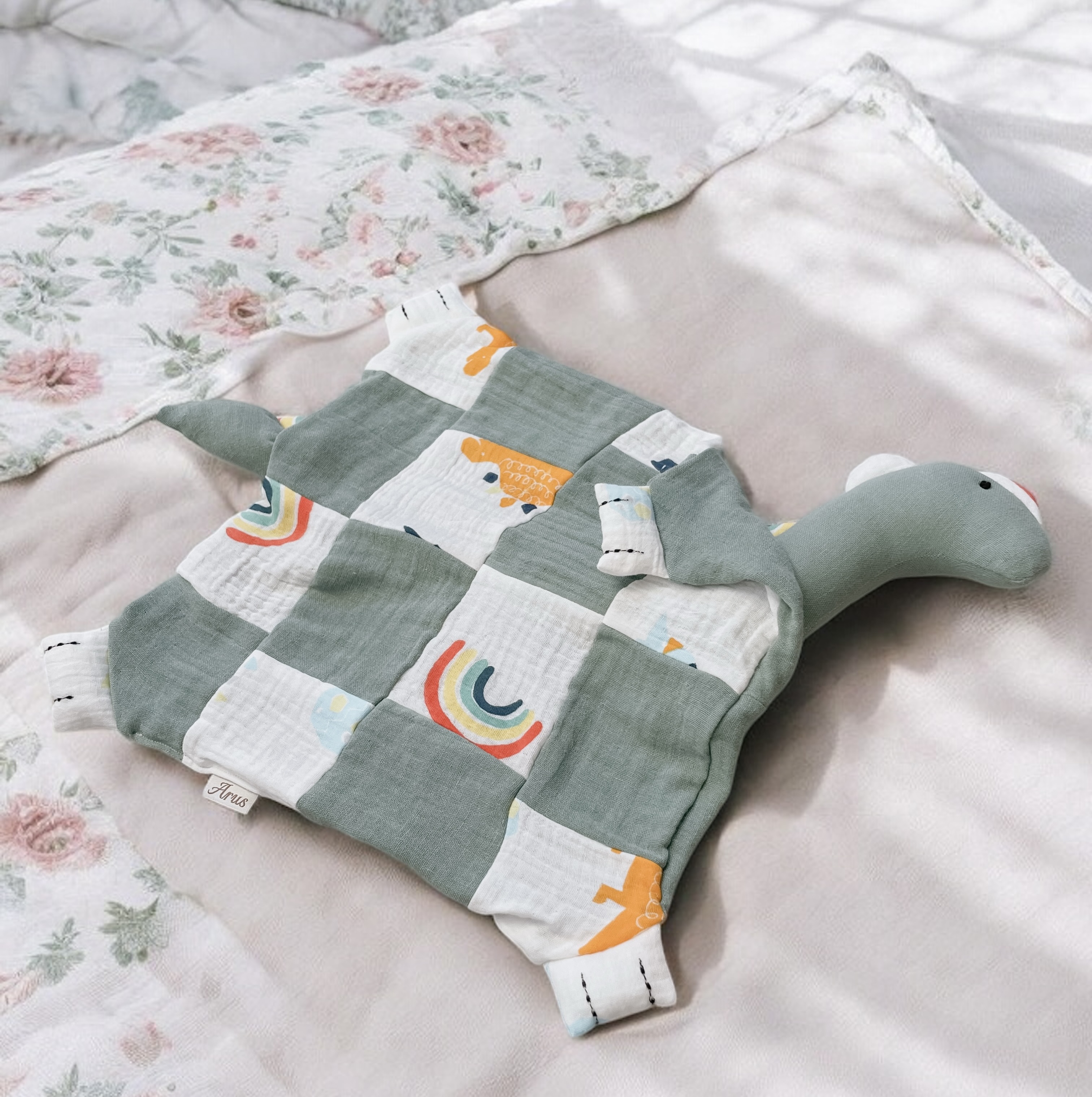 Pierwsza przytulanka muślinowa DINUŚ handmade