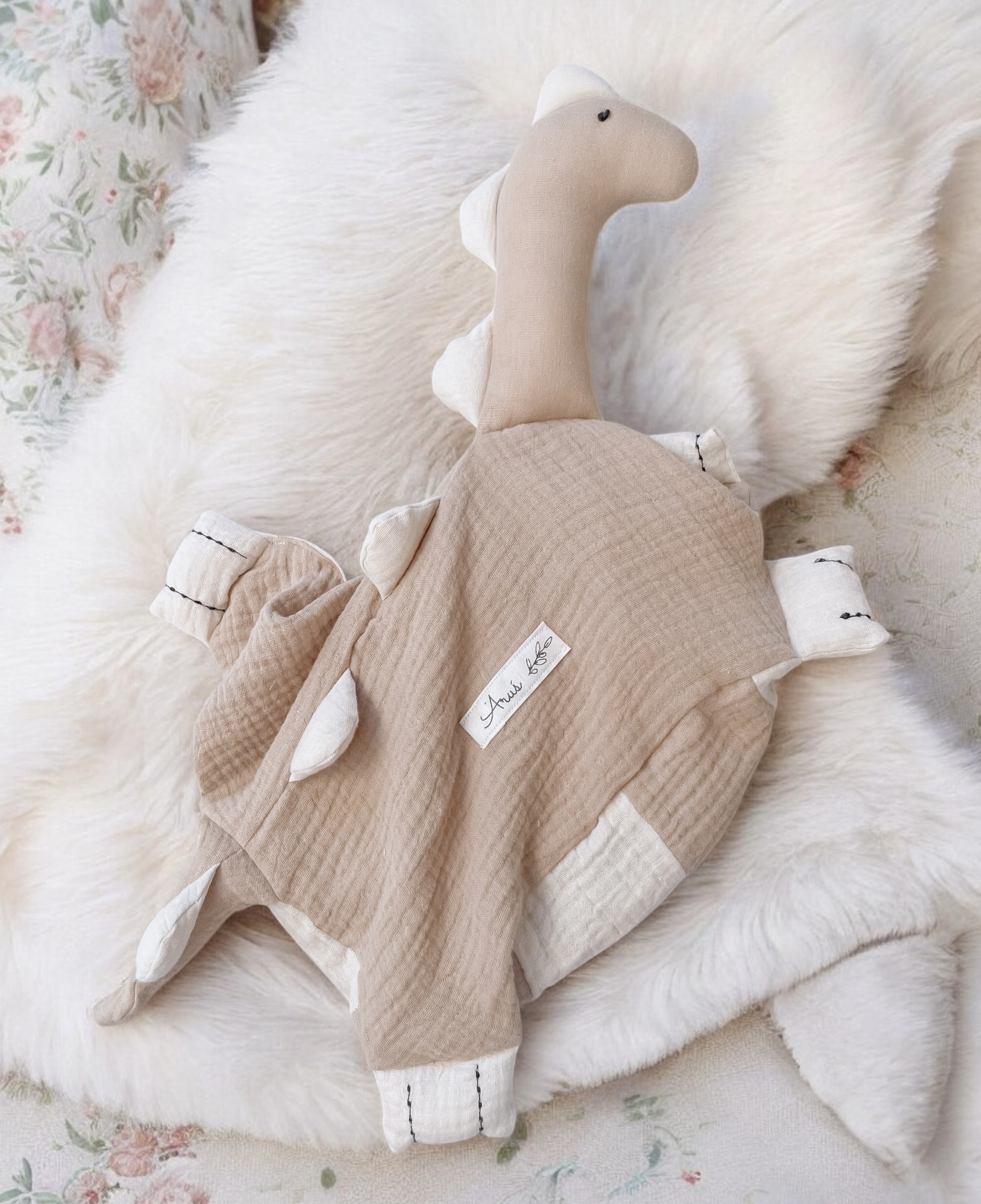 Pierwsza przytulanka muślinowa DINUŚ handmade