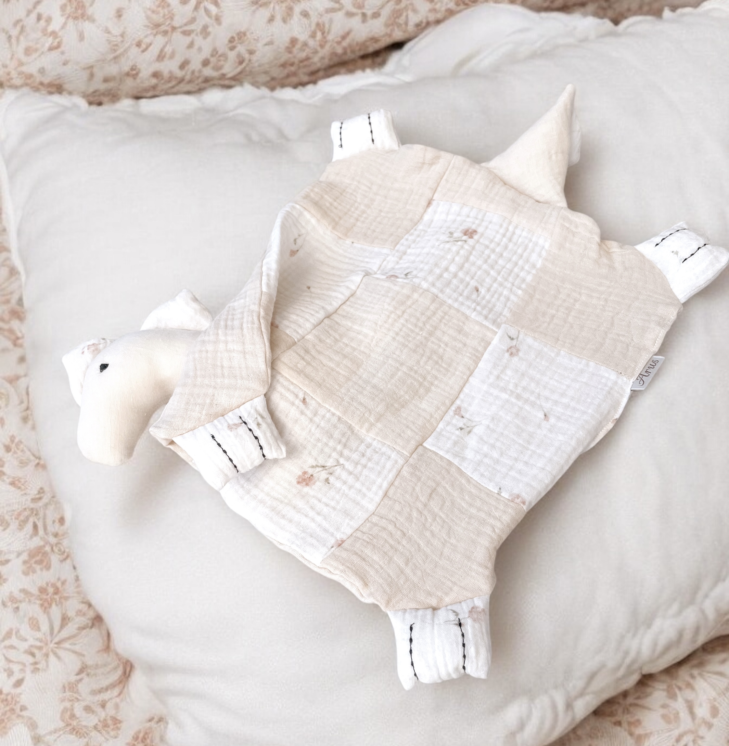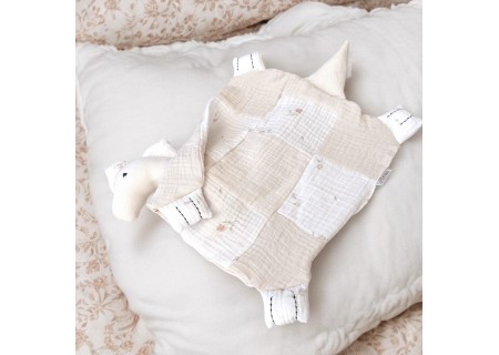 Pierwsza przytulanka muślinowa DINUŚ handmade