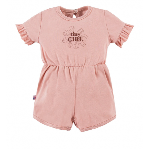 Rampers dziecięcy z krókim rękawem z kolekcji Daisy uszyty z miękkiej i przyjemnej w dotyku dzianiny bawełnianej. W pasie wszyta gumka nie uwierająca brzuszka dziecka. Rampers rozpinany jest w kroczku i na karku. Elementem ozdodnym są falbanki doszyte do rękawków. Rampersy będą strzałem w dziesiątkę podczas szaleństw na plaży, ale również sprawdzi się jako ubranko wyjściowe na różne okazje.