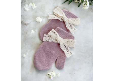 Rękawiczki z dzianiny zakończone ściągaczem z ozdobną koronką