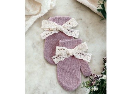 RĘKAWICZKI Z KORONKĄ ciemny róż