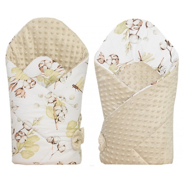 Śliczny miękki cieplutki dwustronny becik w połączeniu tkaniny minky oraz tkaniny bawełnianej