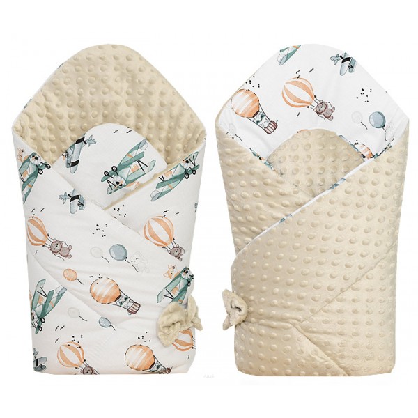 Śliczny miękki cieplutki dwustronny becik w połączeniu tkaniny minky oraz tkaniny bawełnianej