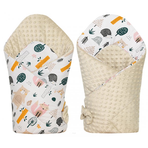 Rożek becik niemowlęcy dwustronny MINKY (beżowy +niedźwiadek)