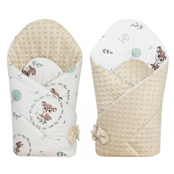 Rożek becik niemowlęcy dwustronny MINKY (beżowy +wianuszki zielone)