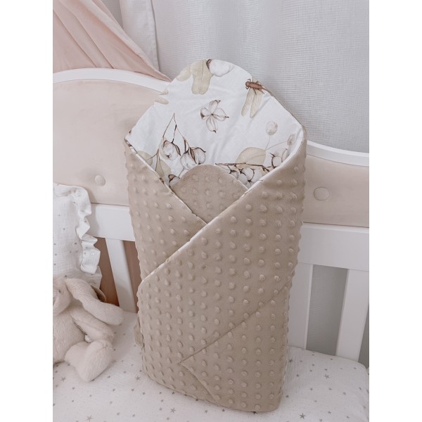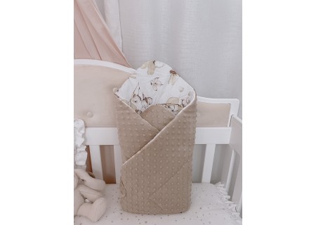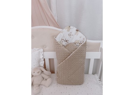 Śliczny miękki cieplutki dwustronny becik w polaczeniu tkaniny minky oraz tkaniny bawełnianej