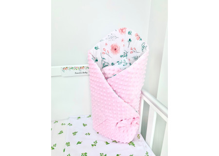 Rożek becik niemowlęcy dwustronny MINKY pink Eucaliptus