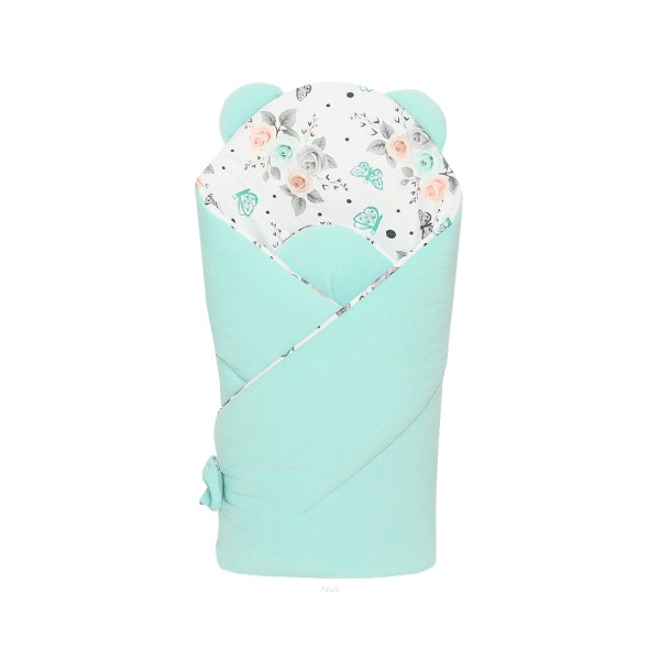 Rożek becik niemowlęcy VELVET (mięta +białe różyczki)