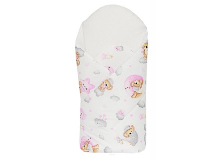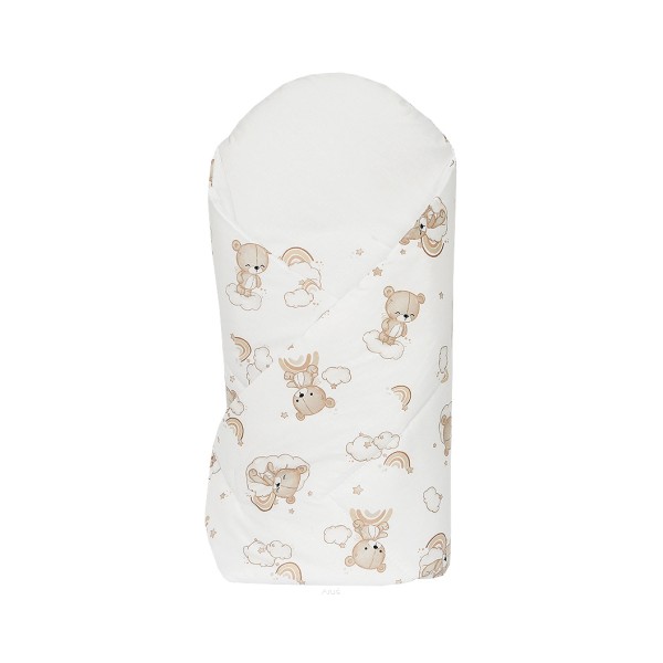 Rożek becik usztywniony (beżowe misie z tęczą)