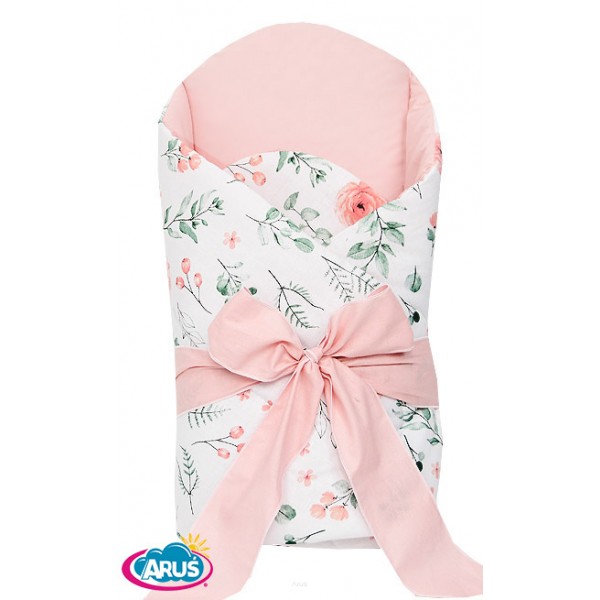 Rożek becik usztywniony wiązany KOKARDKA (eucaliptus +róż pudrowy)