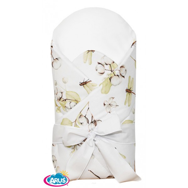 Rożek becik usztywniony wiązany KOKARDKA (kwiat bawełny +biały gładki)