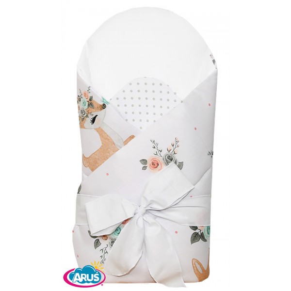 Rożek becik usztywniony wiązany KOKARDKA (sarenka bambi +biały gładki)