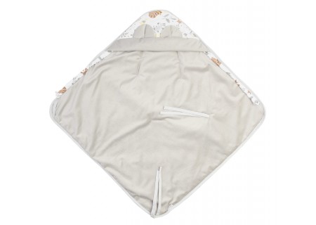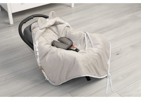 Otulacz do fotelika Velvet został stworzony z myślą o najmłodszych dzieciach. Jest wygodny i ciepły, a do tego bardzo praktyczny. Jest to alternatywa dla ciepłej odzieży dziecięcej. Dzięki otworom na pasy 3-punktowe jest bardzo funkcjonalny – nie trzeba rozpinać pasów, aby odkryć dziecko w nosidełku. Otulacz posiada kapturek z uroczymi uszkami, który jest regulowany ściągaczem. Wypełniony jest antyalergicznym wkładem. Wewnątrz znajduje się delikatna tkanina velvet.