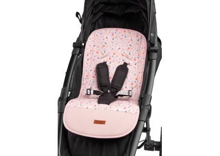 Dzięki uniwersalnej wkładce do wózka z wodoodpornym podnóżkiem, każdy może zmienić wygląd swojego wózka spacerowego. Wkładka pomaga utrzymać wnętrze wózka w czystości oraz podnosi komfort podróżowania. Dodatkowo posiada otwory na pasy bezpieczeństwa oraz wstążkę, do której przywiązać można poduszkę do kompletu