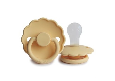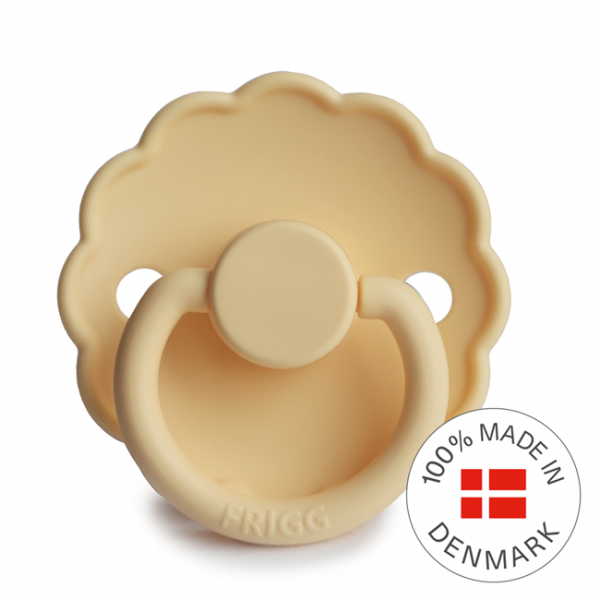 Smoczek Frigg Daisy charakteryzuje się falistą krawędzią która imituje płatki kwiatów nadając mu klasyczny i elegancki wygląd. Detale designu przyciągną wzrok każdej mamy dbającej o komfort i styl wybieranych produktów. Tarczka smoczka została lekko odgięta do zewnątrz, aby utrzymać ją z dala od delikatnej skóry dziecka. Posiada równierz otworki wentylacyjne zapewniające odpowiedni przepływ powietrza, zapobiegając potencjalnym podrażnieniom. Pełen uroku smoczek FRIGG Daisy jest dostępny w szerokiej gamie kolorystycznej.