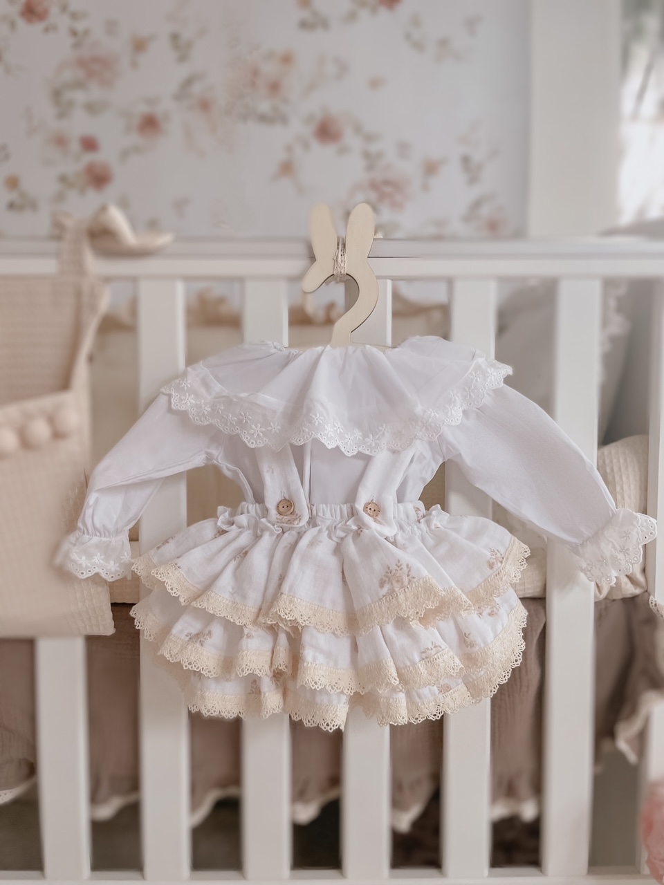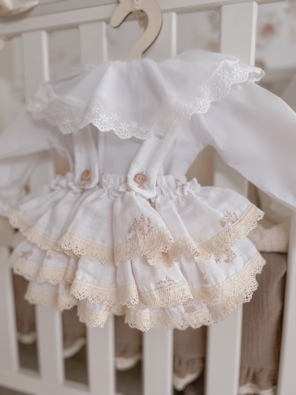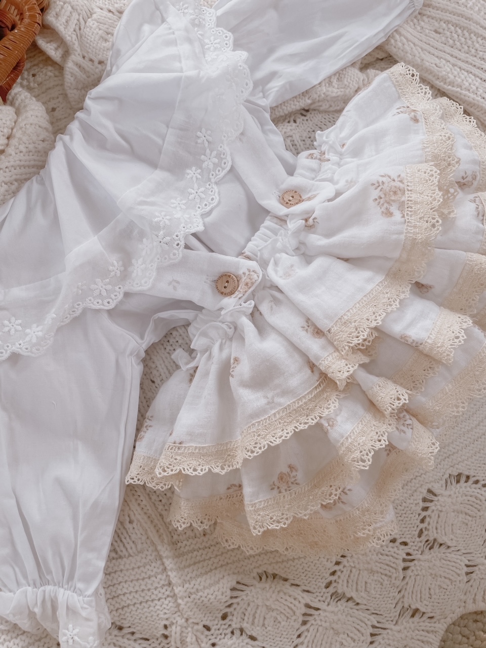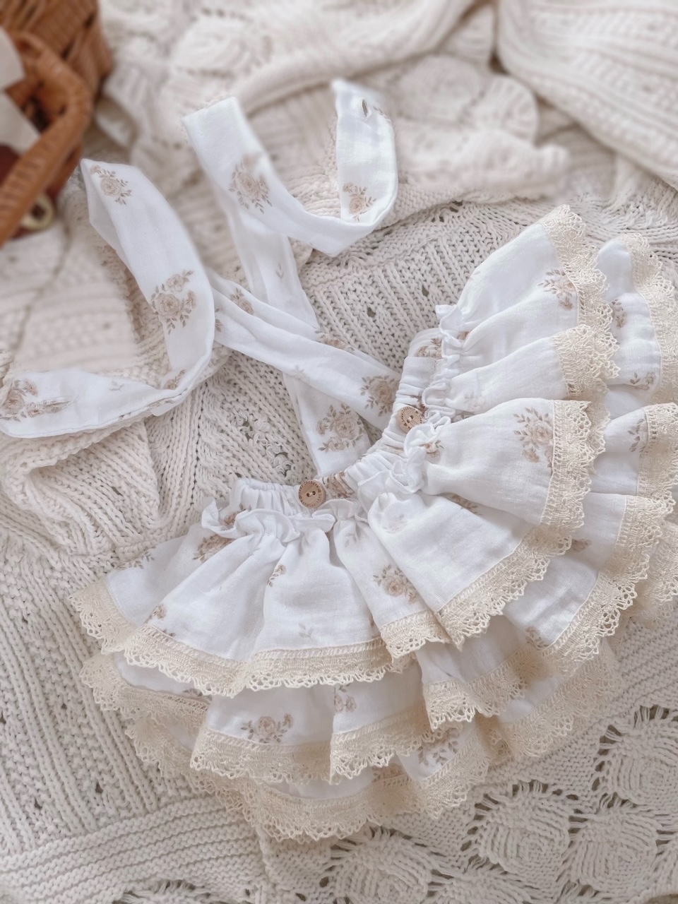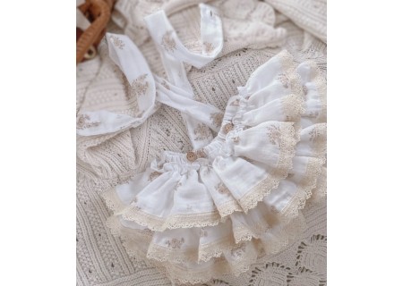 Skład : muślin bawełniany double gaze 100% , bawełniana koronka
