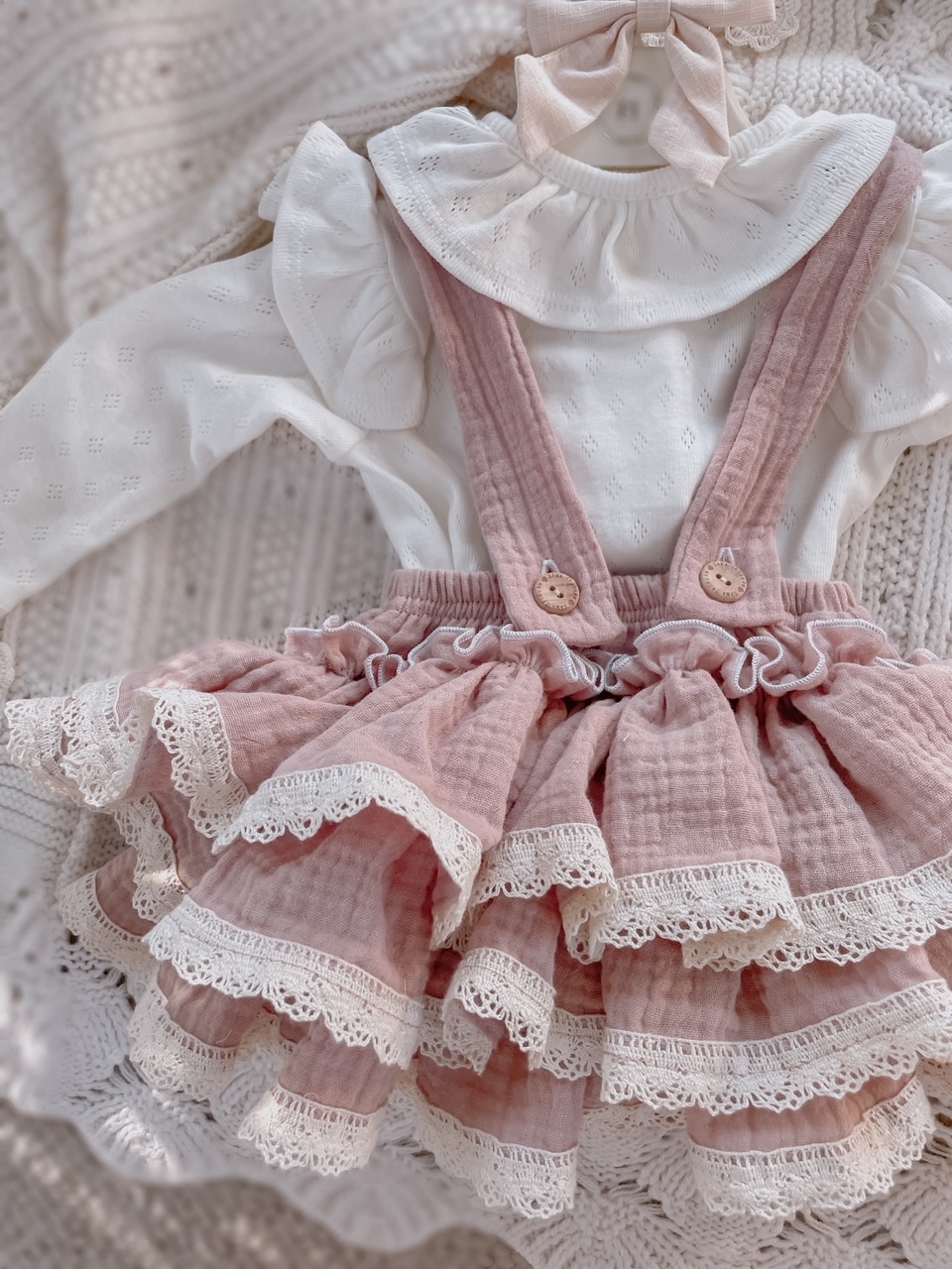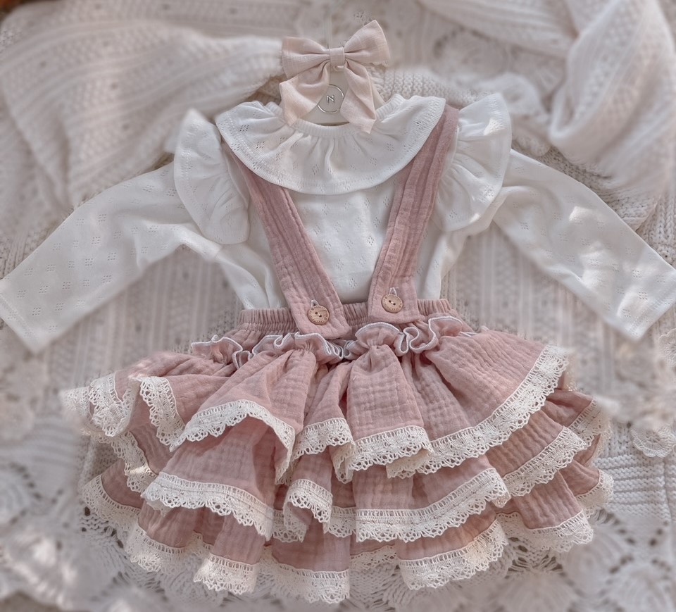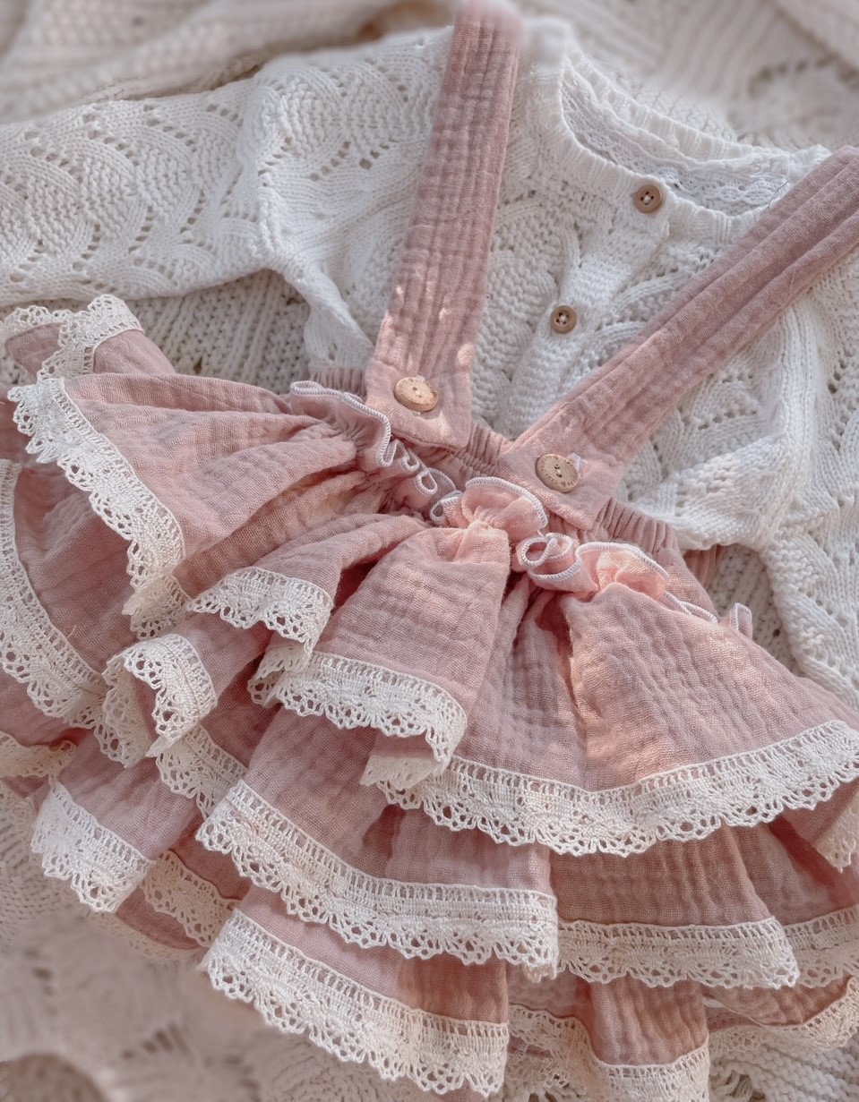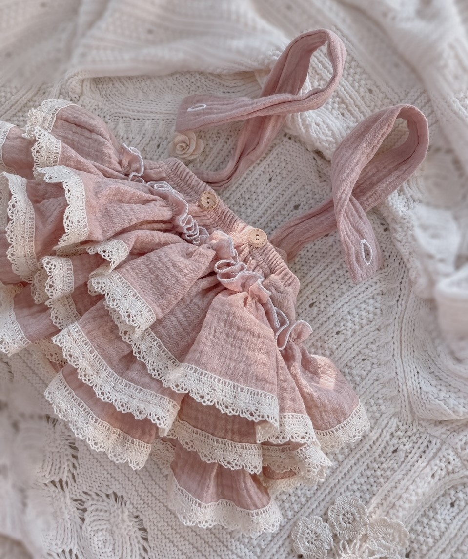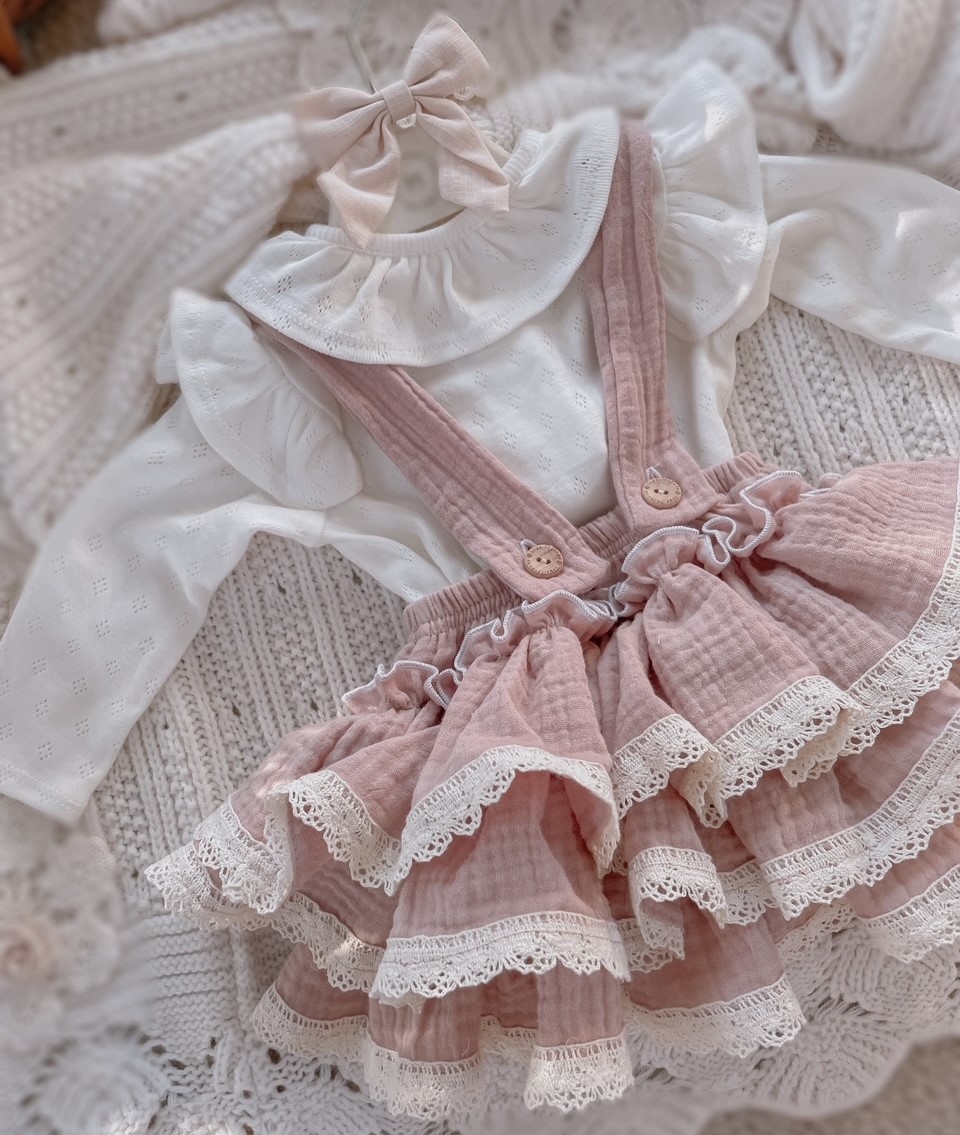 Skład : muślin bawełniany double gaze 100% , bawełniana koronka