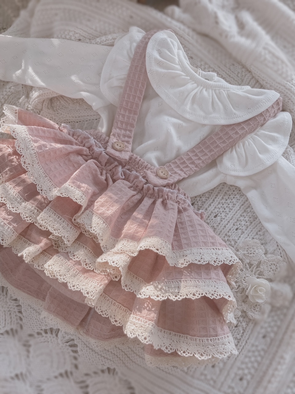 Skład : bawełna 100% o wafelkowym splocie, bawełniana koronka