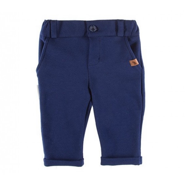 Spodnie chłopięce z kolekcji "Ceremony" wykonane z miękkiej i przyjemnej w dotyku szarej i granatowwj dresówki. Zapinane na guziczek. Przy kieszonce znajduje się niewielka naszywka wykonana z eko skóry. Posiadają w pasie gumę nie uwierająca brzuszka dziecka. Nogawki posiadają mocowane wywinięcie.