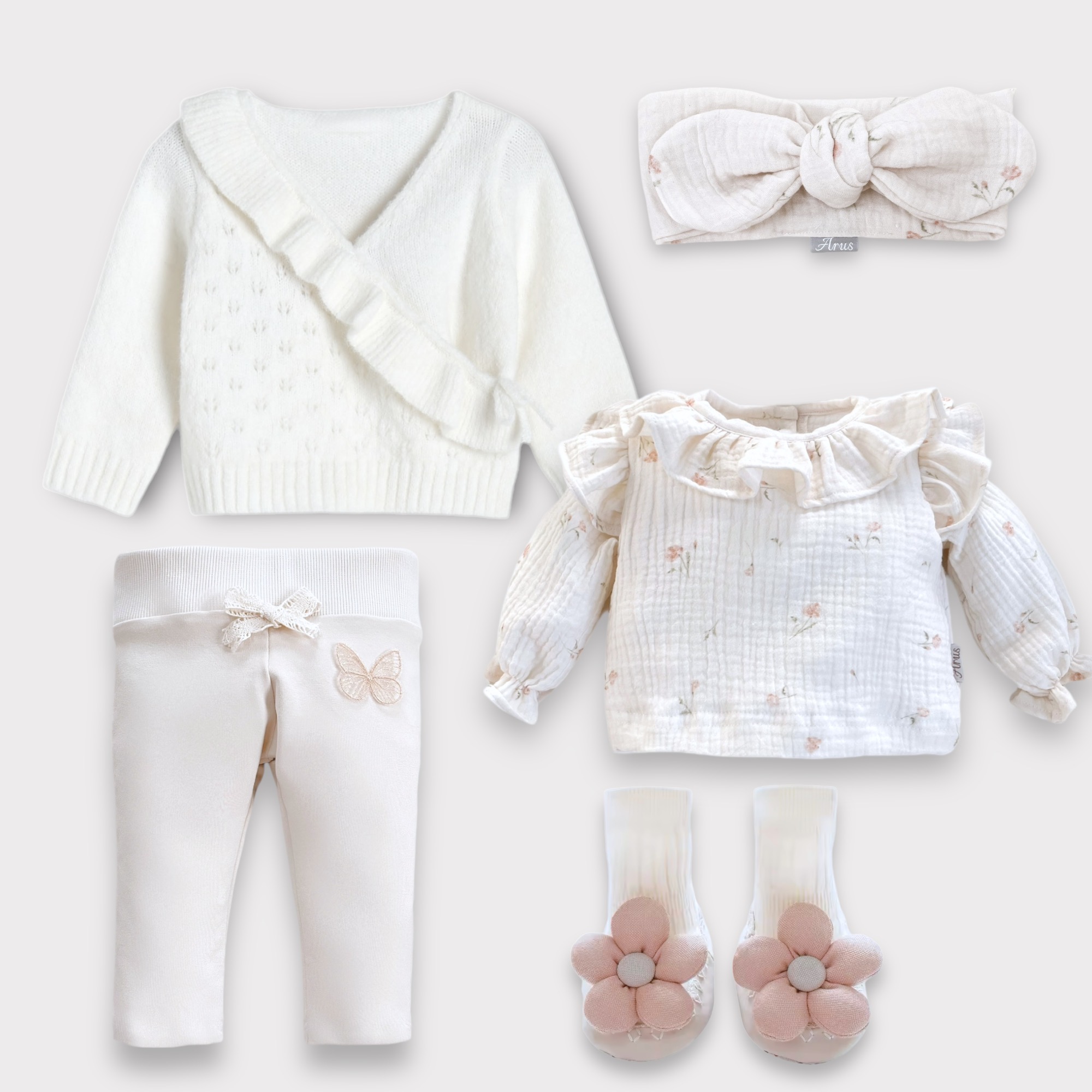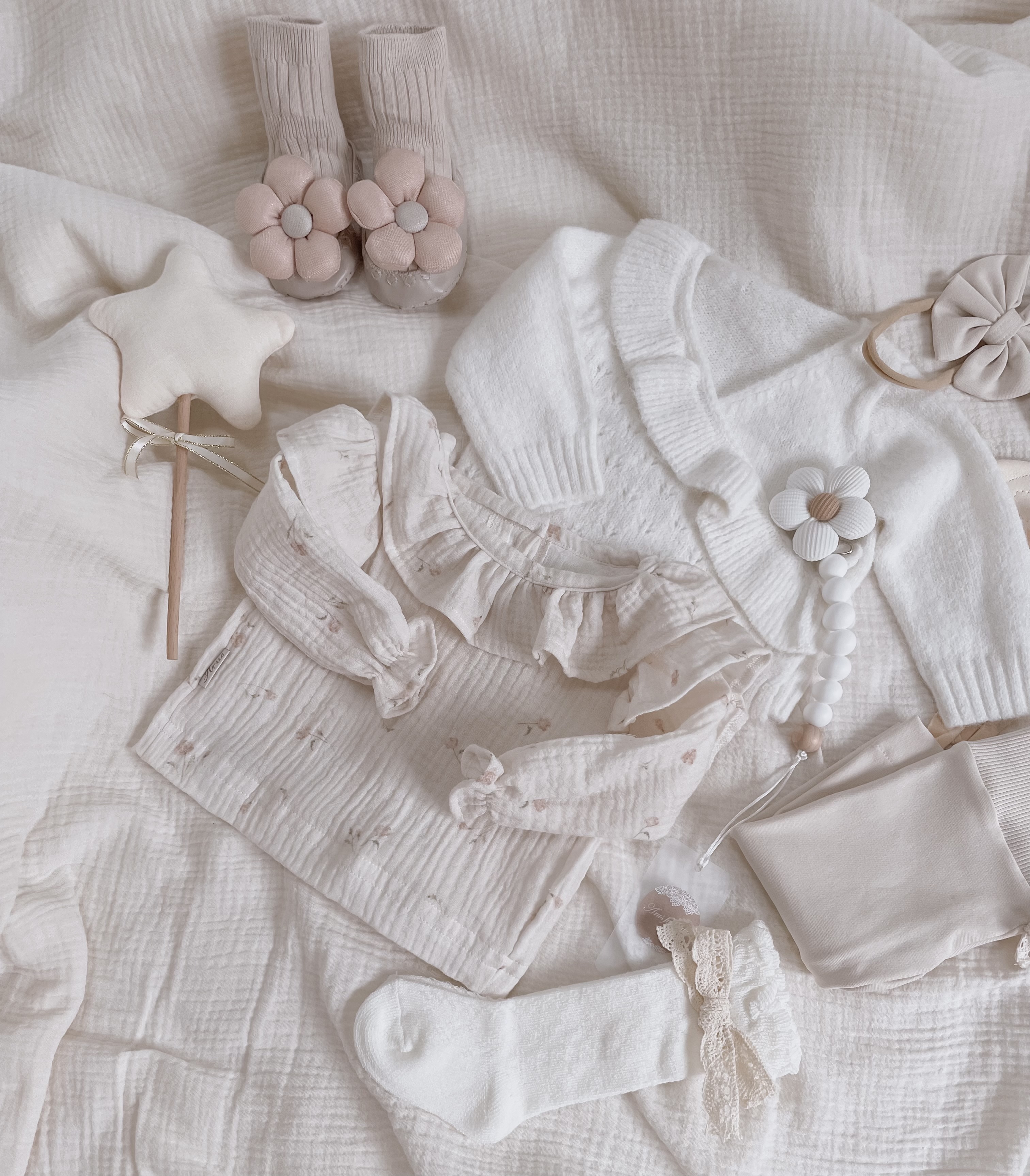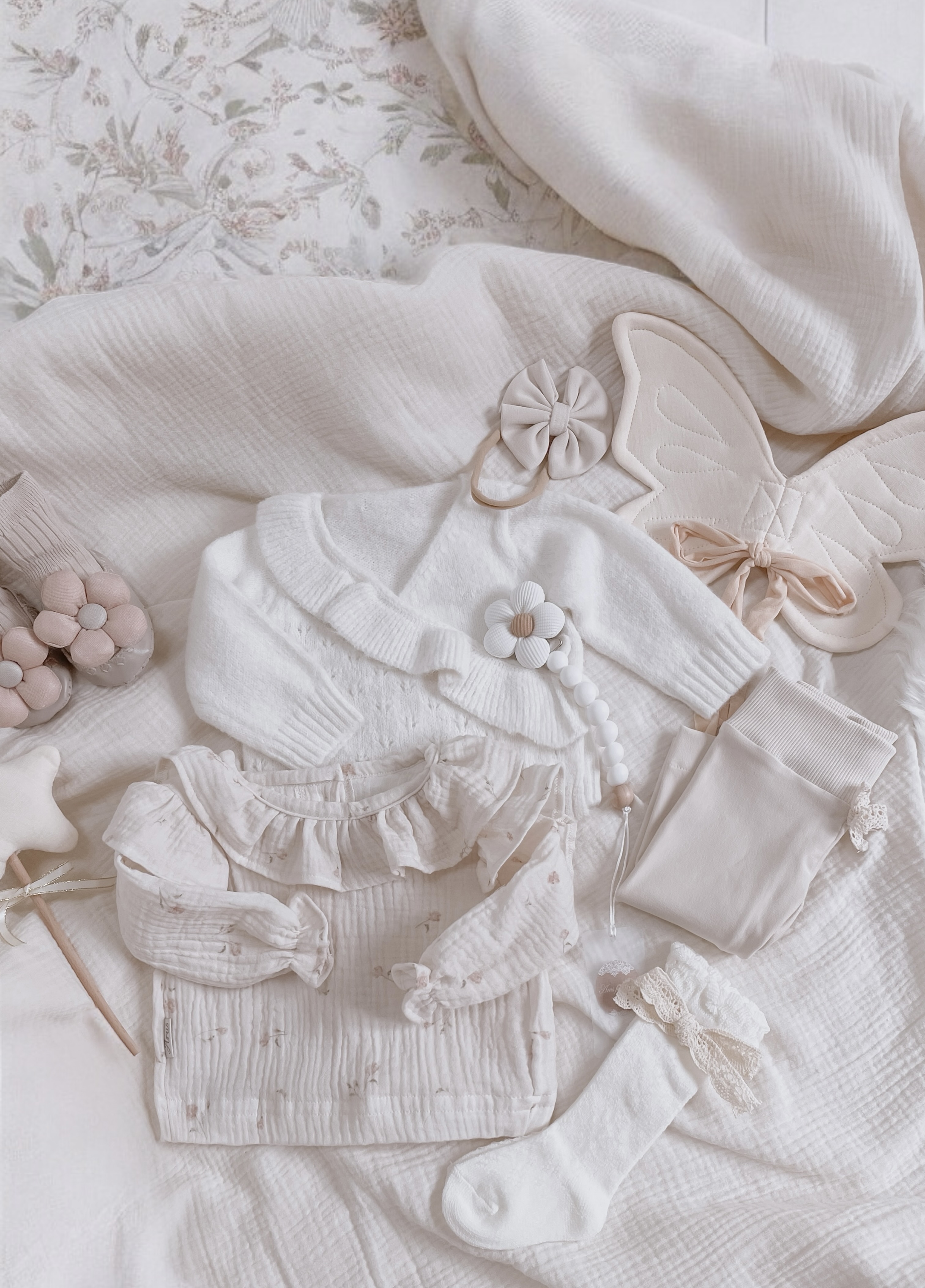 Sweterek niemowlęcy z niezwykle miękkiej dzianiny o ażurowym splocie z falbanką.