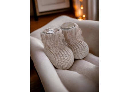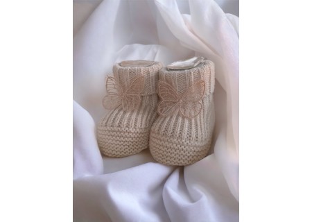 SWETERKOWE SKARPETKI/ BUCIKI BUTTERFLY OF THE VALLEY beżowe rose gold
