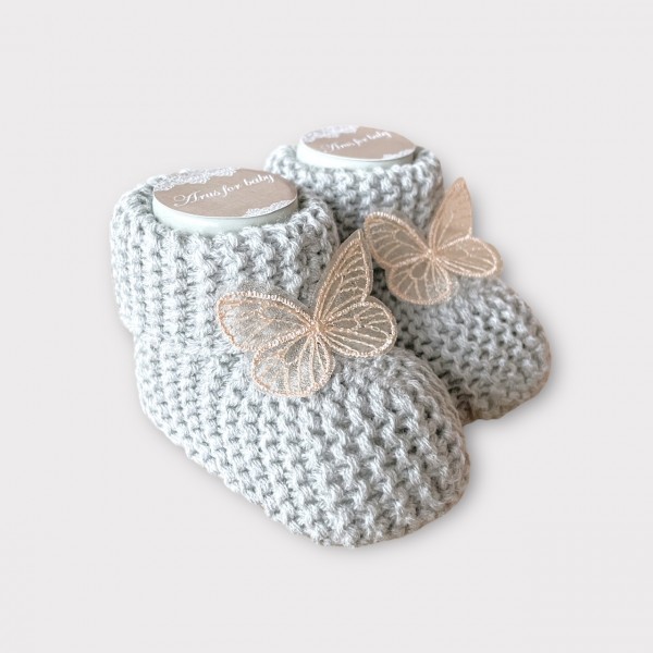 Skarpetki / buciki sweterkowe z kolekcji Arus Accessories wykonane w stu procentach z akrylu.