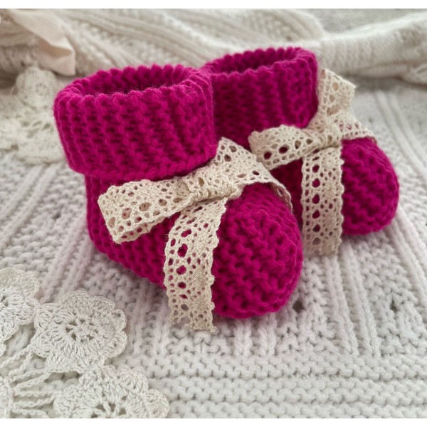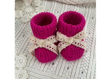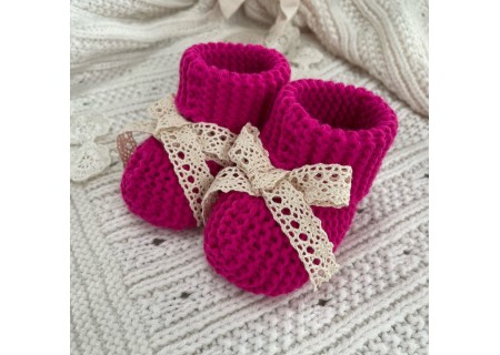 Sweterkowe skarpetki/ buciki malinowe z koronką