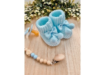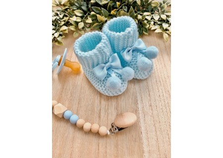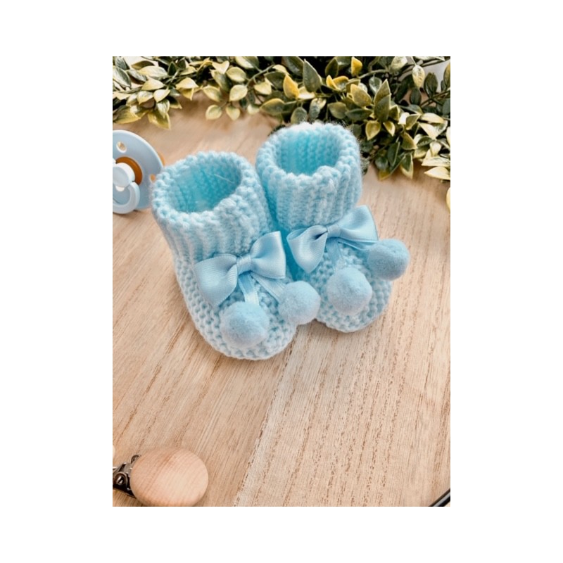 Sweterkowe skarpetki/ buciki sweet pompons baby blue 0-3m