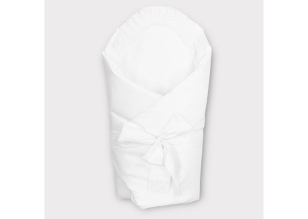 Z góry szatka jest wykończona dwoma troczkami, które pozwalają na jej zawiązanie wokół szyjki dziecka. Troczki są odpowiednio długie, dlatego możemy łatwo wyregulować wiązanie, aby zapewnić maluszkowi komfort i bezpieczeństwo.