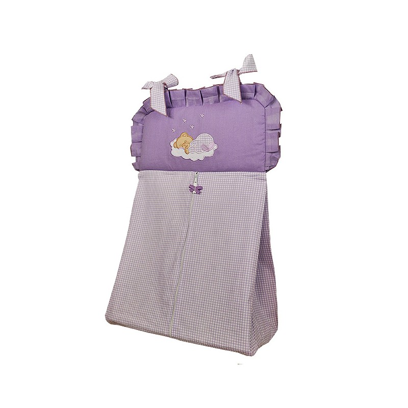 Torba może być wykorzystana do przechowywania pieluszek tetrowych oraz pieluszek jednorazowych. To świetna propozycja także do małych pokoików dziecięcych i wtedy, gdy łóżko znajduje się w sypialni rodziców – razem z tym przybornikiem można oszczędzić dużo miejsca.