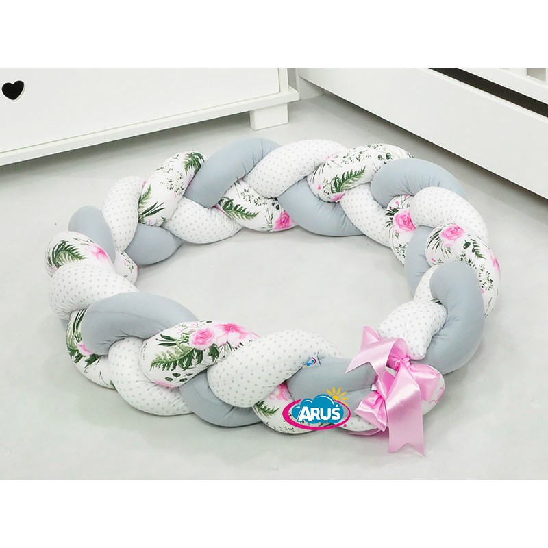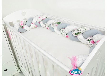 Ochraniacz można wykorzystać jako spleciony warkocz lub też każdy z elementów warkocza można przepleść między szczebelkami łóżeczka