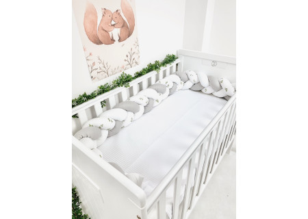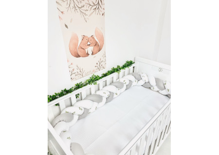 Ochraniacz można wykorzystać jako spleciony warkocz lub też każdy z elementów warkocza można przepleść między szczebelkami łóżeczka