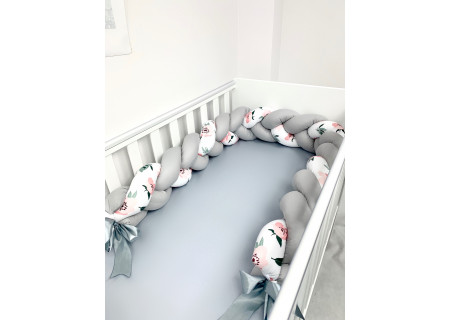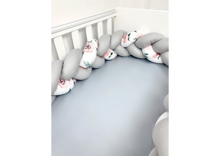 Ochraniacz można wykorzystać jako spleciony warkocz  lub też każdy z elementów warkocza można przepleść między szczebelkami łóżeczka