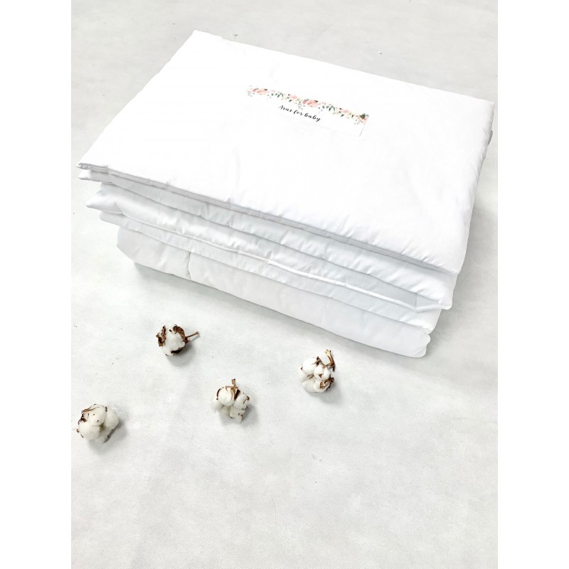 Zestaw składa się z wypełnień wykończonych miękką włókniną poliestrową 100%. Jest ona antyalergiczna, bardzo przyjemna w dotyku, może być także prana w celu zachowania higieny na najwyższym poziomie. Poszycie to tkanina bawełna w białym kolorze. Materiał jest atestowany, przeznaczony do użytku dla dzieci i niemowląt.