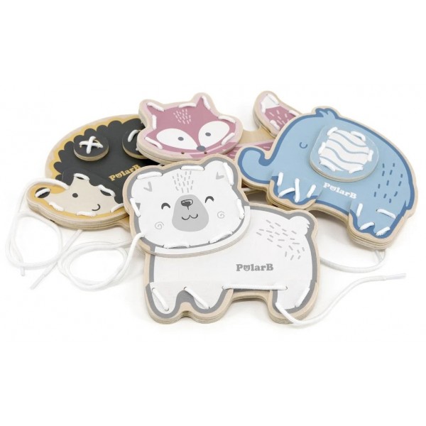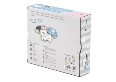 Zestaw składa się z czterech uroczych zwierzątek: Miś Michaś, Słonik Stefcio, Jeż Januszek, Lisica Lisa. Zwierzątka są w różnych kolorach, co ułatwia Maluszkowi dopasowanie elementów do odpowiedniego zwierzątka. Dołączone do zestawu sznureczki do przeplatania pozwolą uzyskać trójwymiarową postać zwierzątka.