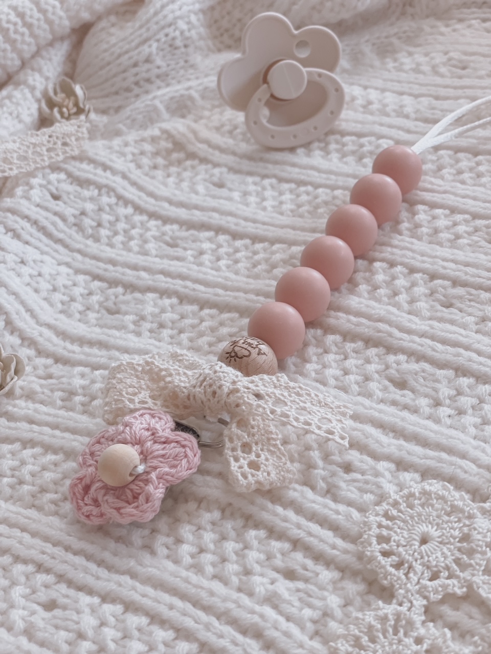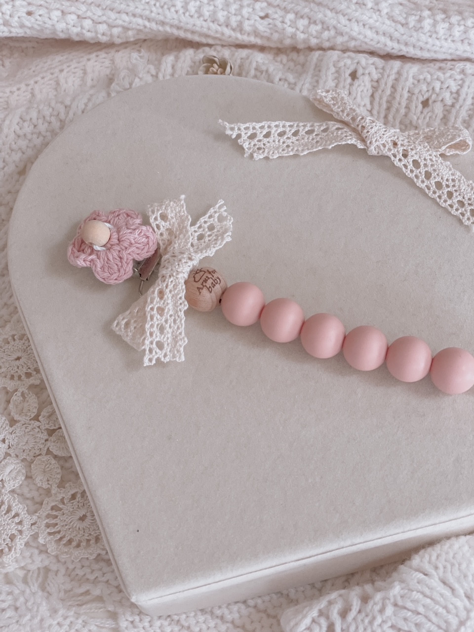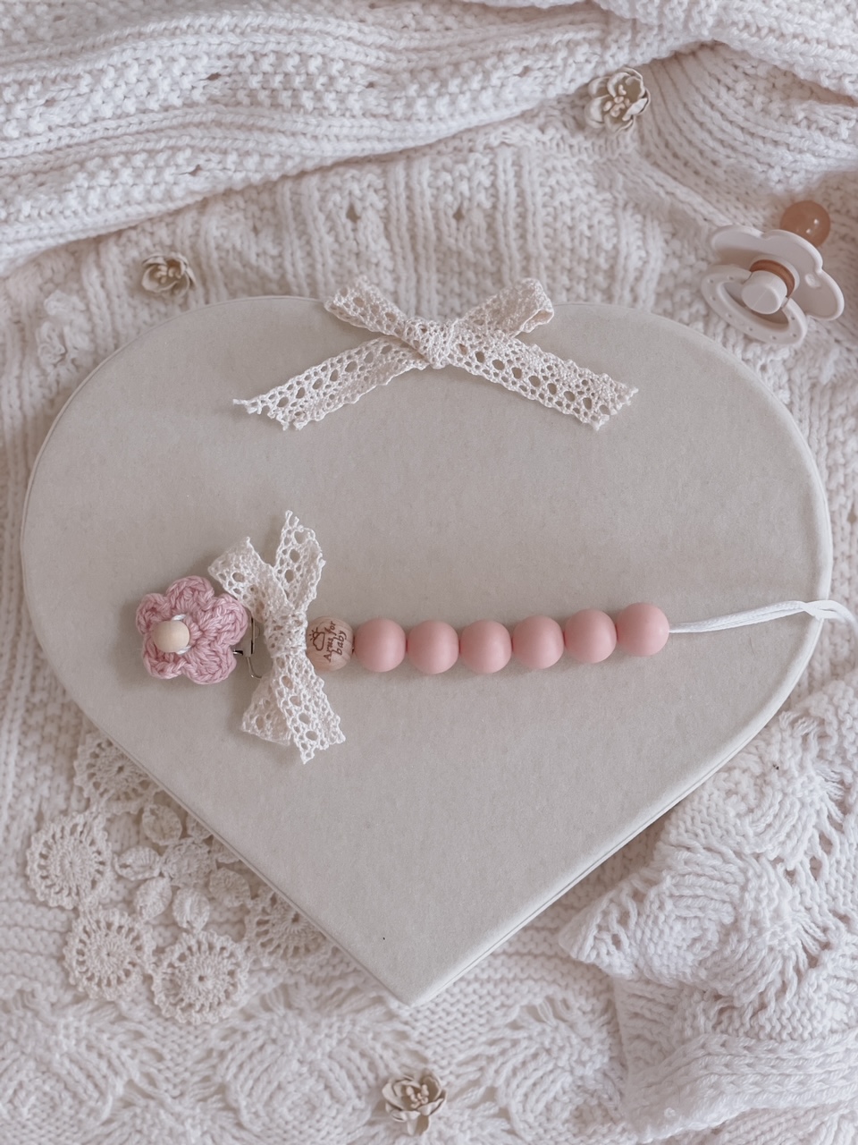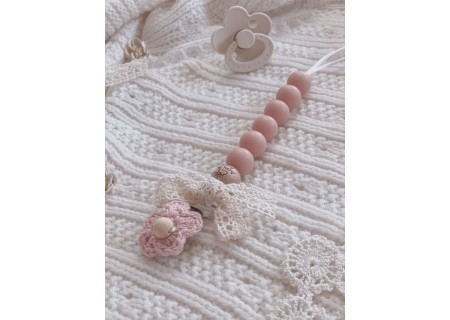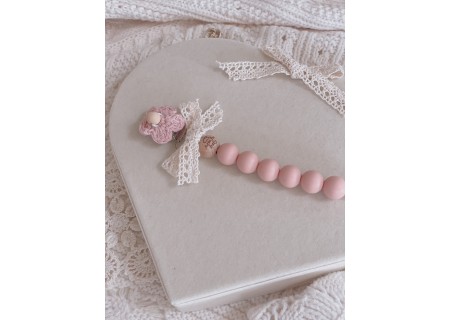 Zawieszka HANDMADE do smoczka z bawełnianą koronką