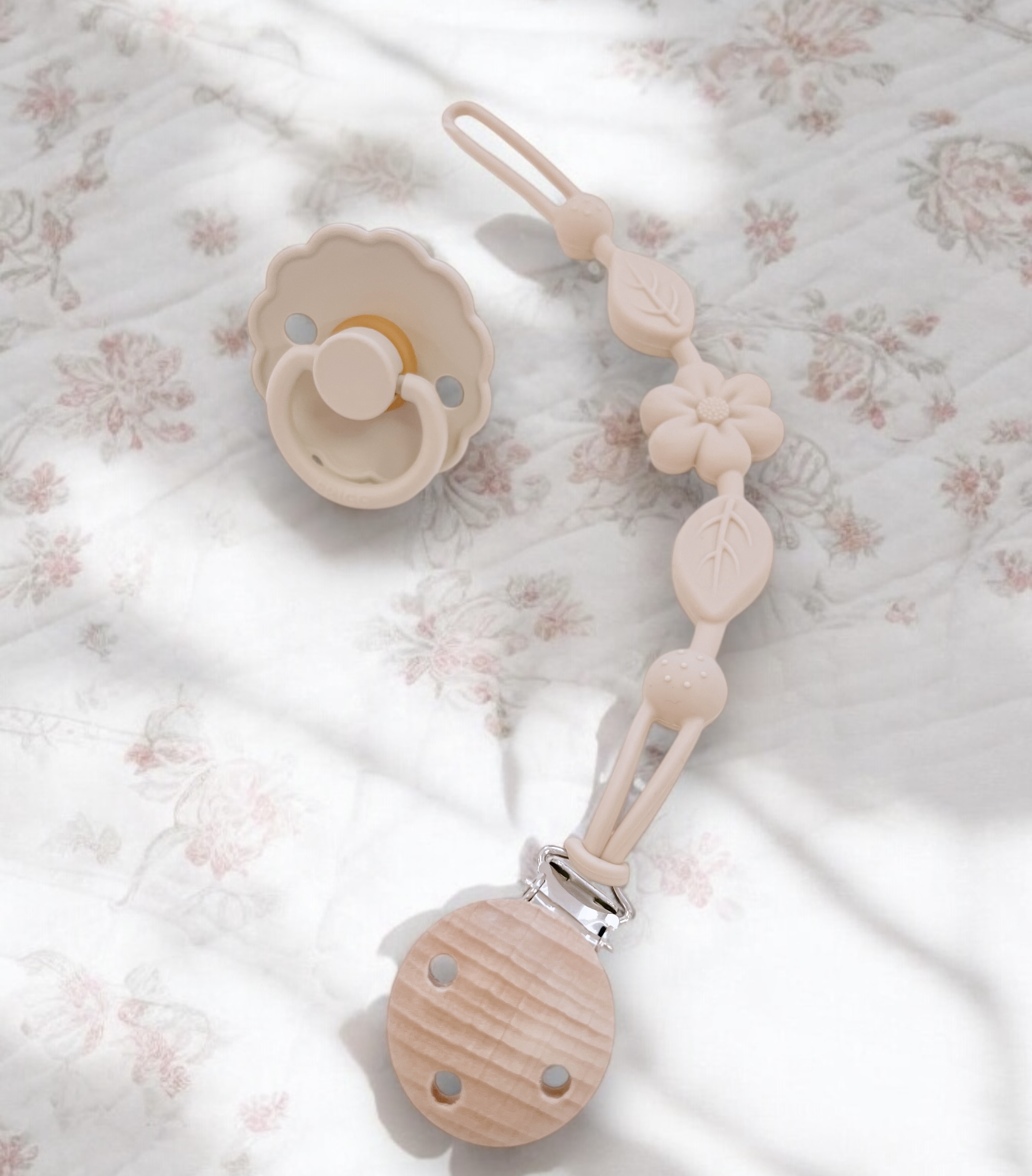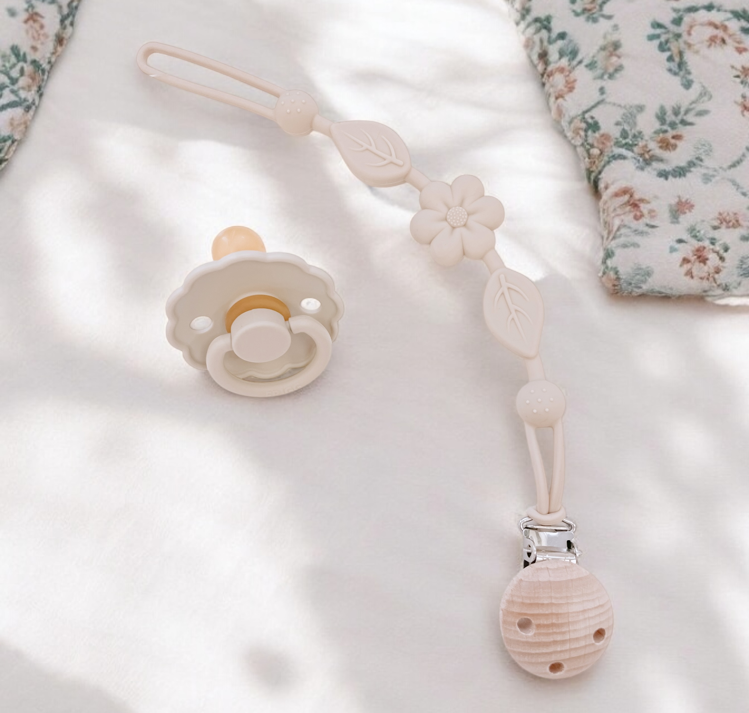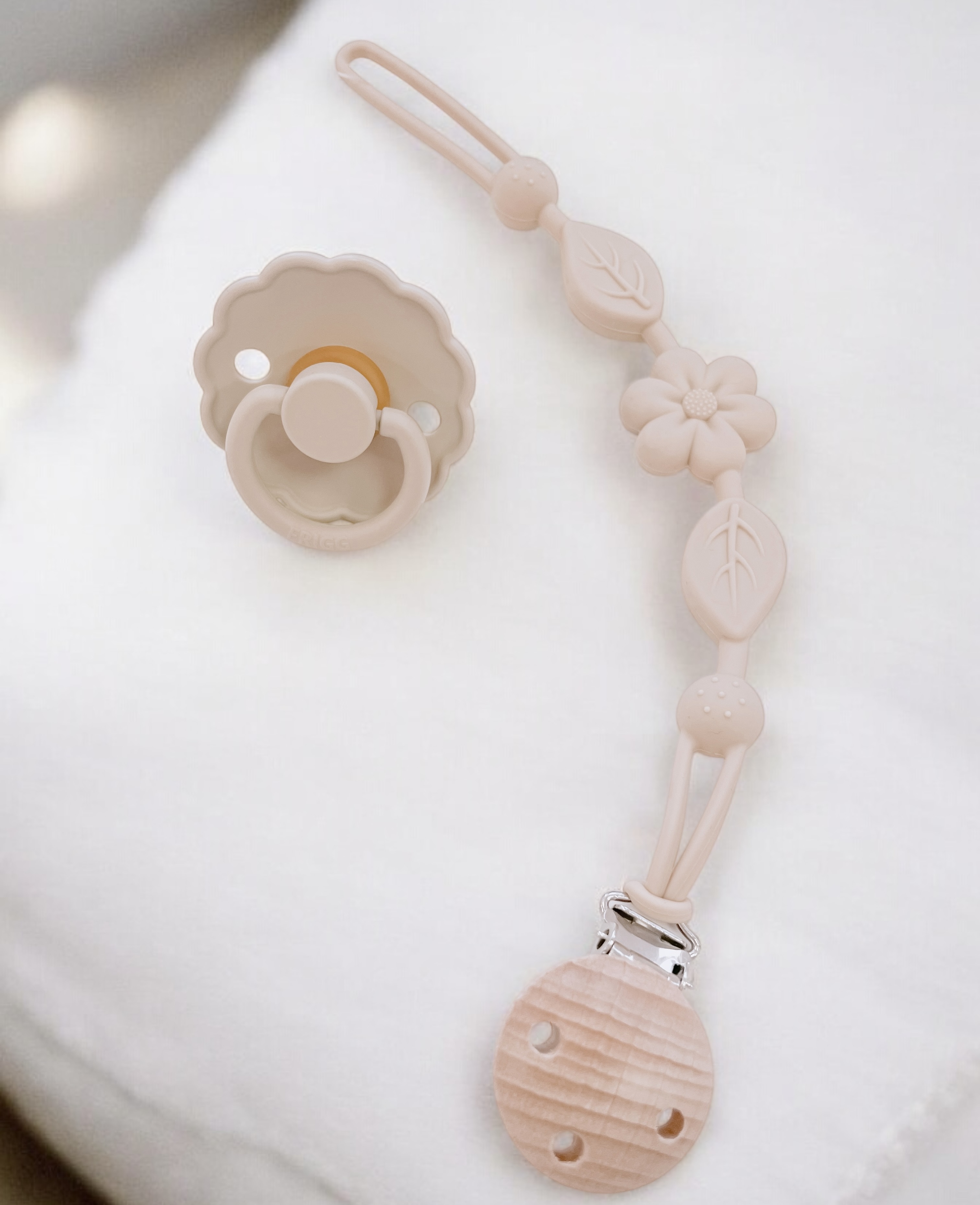 Smoczek Frigg Daisy charakteryzuje się falistą krawędzią która imituje płatki kwiatów nadając mu klasyczny i elegancki wygląd. Detale designu przyciągną wzrok każdej mamy dbającej o komfort i styl wybieranych produktów. Tarczka smoczka została lekko odgięta do zewnątrz, aby utrzymać ją z dala od delikatnej skóry dziecka. Posiada równierz otworki wentylacyjne zapewniające odpowiedni przepływ powietrza, zapobiegając potencjalnym podrażnieniom. Pełen uroku smoczek FRIGG Daisy jest dostępny w szerokiej gamie kolorystycznej.