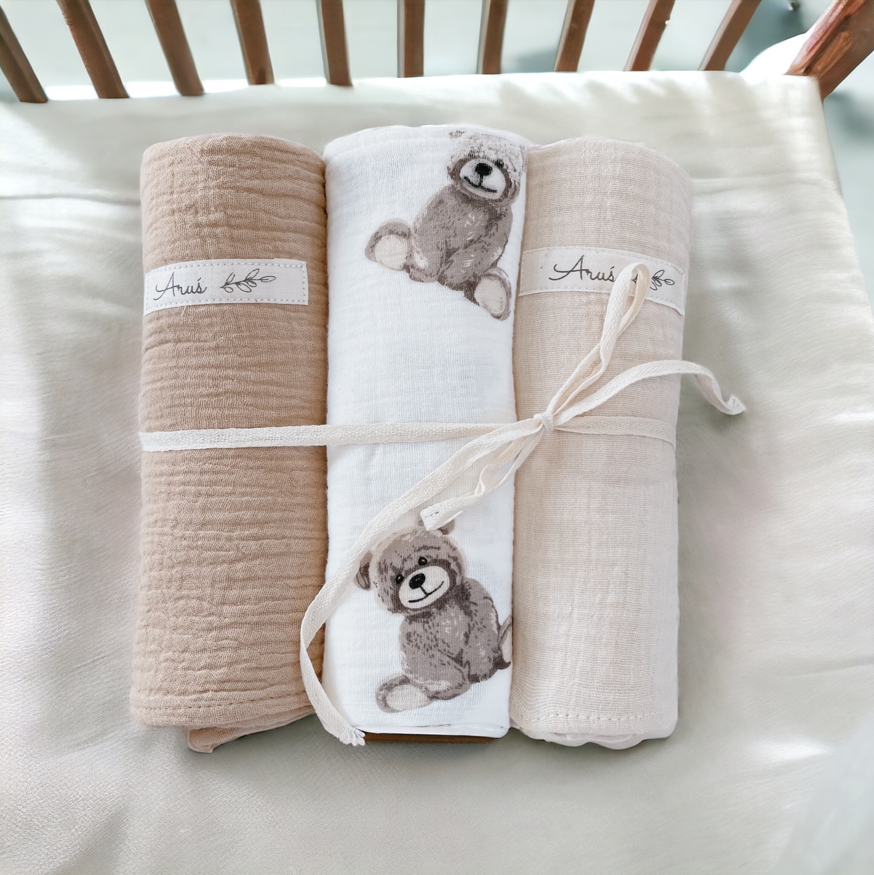 Świetnie sprawdzą się jako okrycie podczas karmienia piersią czy podkład na ramię rodzica chroniący ubranie przed ulewaniem.
