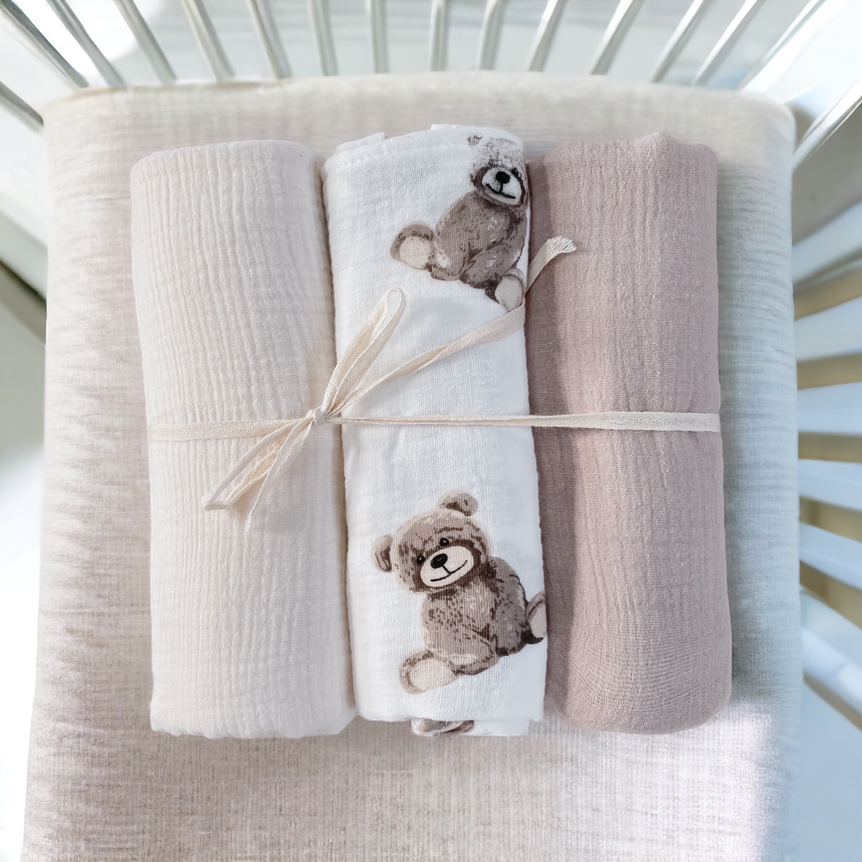 Muślin to jeden z najbardziej czystych, najprostszych oraz wyjątkowo delikatnych materiałów. Muślin bawełniany charakteryzuje się cienkim splotem, dzięki czemu jest przewiewny i lekki. Ma to także wpływ na zdolność materiału do oddychania. Muślin Bawełniany zmniejsza ryzyko przegrzania u maluszka, dbając o utrzymanie właściwej temperatury. Dzięki temu dziecko może cieszyć się komfortem i zadowoleniem przez cały rok, nawet w upalne dni. Kolejną zaletą muślinu tkanego z bawełny, jest odporność na wielokrotne pranie. Materiał nie ulega zniszczeniu, zyskując jedynie na dodatkowej miękkości. Jest to najlepszy wybór wśród tkanin, myśląc o malutkich dzieciach!Jeśli szukają Państwo idealnego materiału dla swojego maluszka to jest to właśnie muślin.