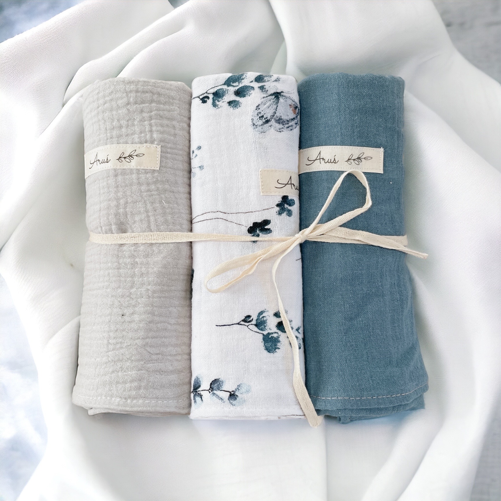 Świetnie sprawdzą się jako okrycie podczas karmienia piersią czy podkład na ramię rodzica chroniący ubranie przed ulewaniem.