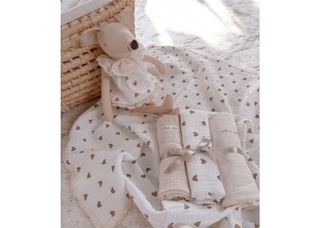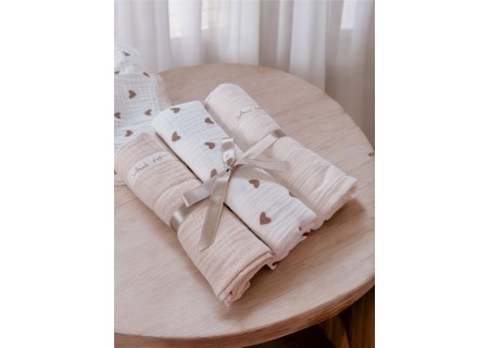 ZESTAW 3 SZT OTULACZY MUŚLINOWYCH Dentelle & Love (serduszka brąz,latte,beż)