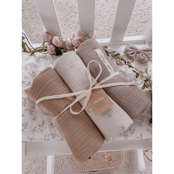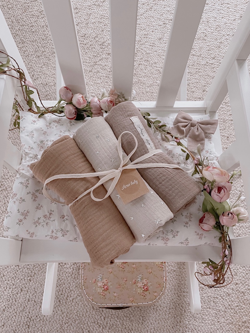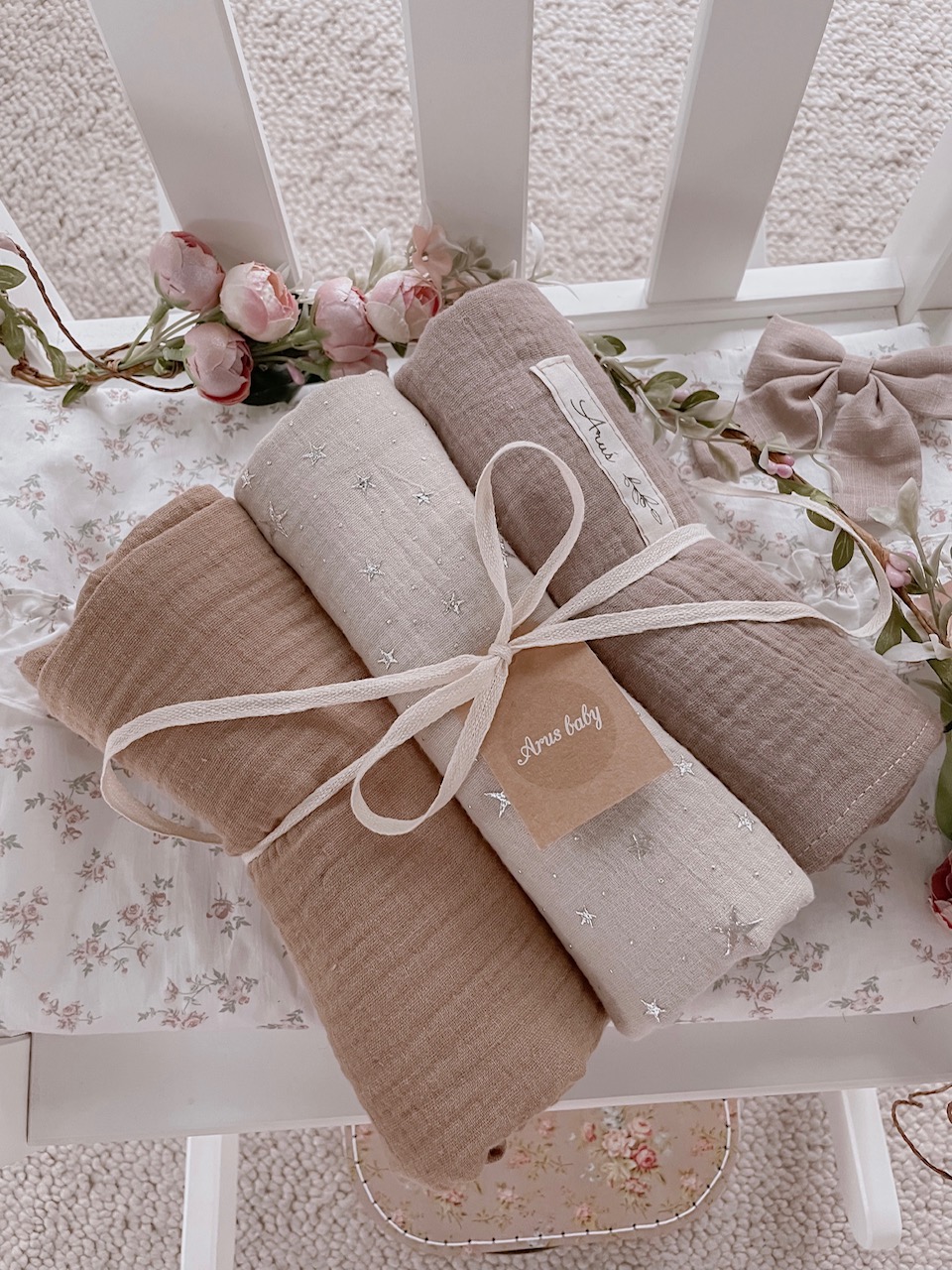 Pieluszki z tego materiału mogą być wykorzystywane już od pierwszych dni życia - jako otulacz, lekki kocyk, podkład do przewijania, prześcieradło czy podręczny ręcznik.