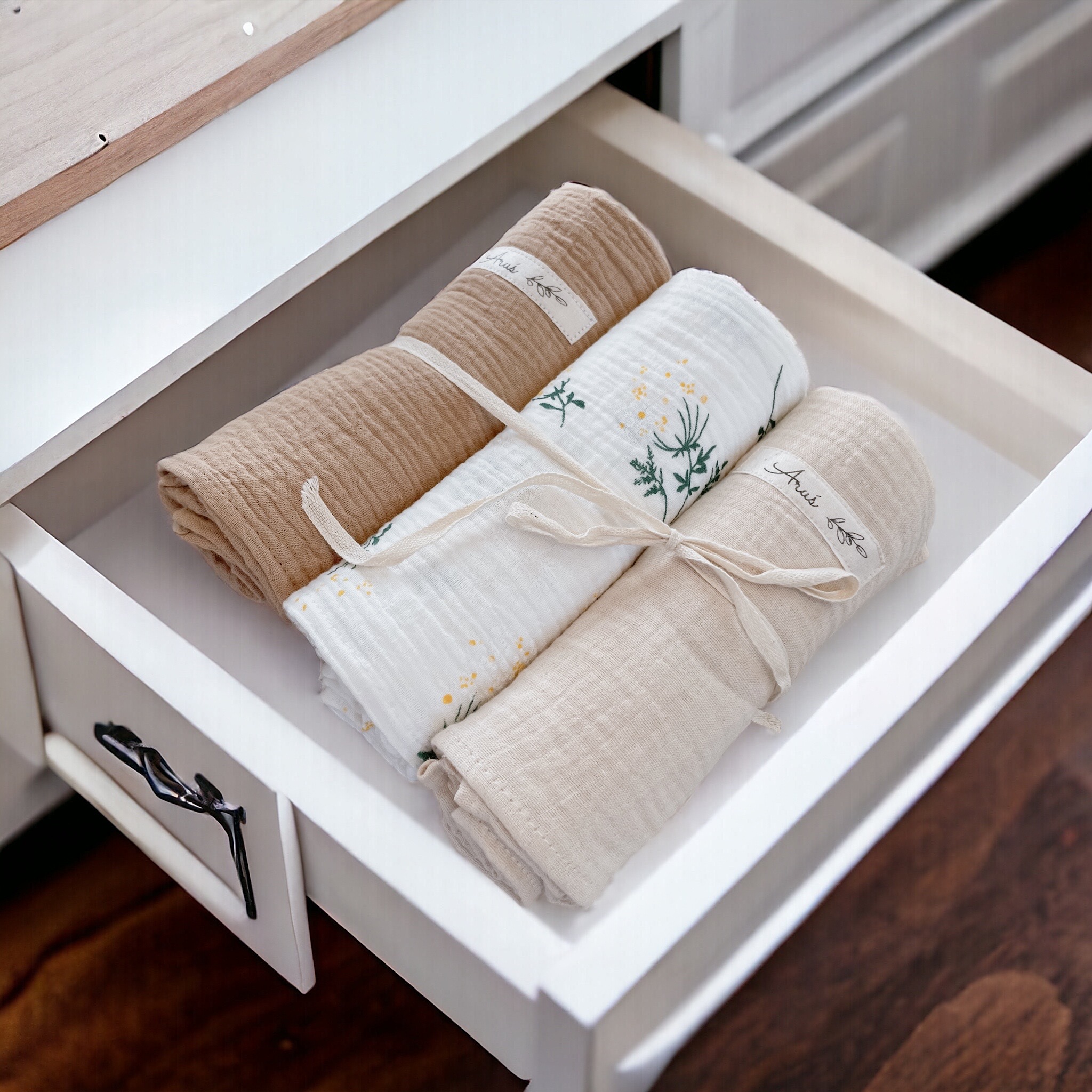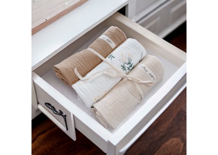 Pieluszki z tego materiału mogą być wykorzystywane już od pierwszych dni życia - jako otulacz, lekki kocyk, podkład do przewijania, prześcieradło czy podręczny ręcznik.