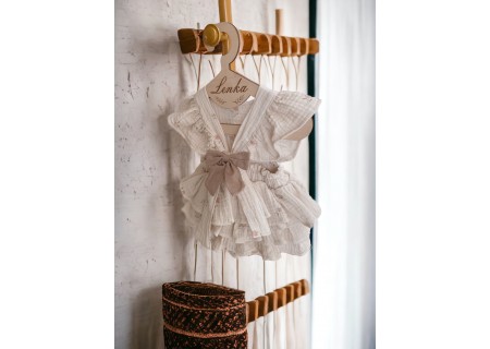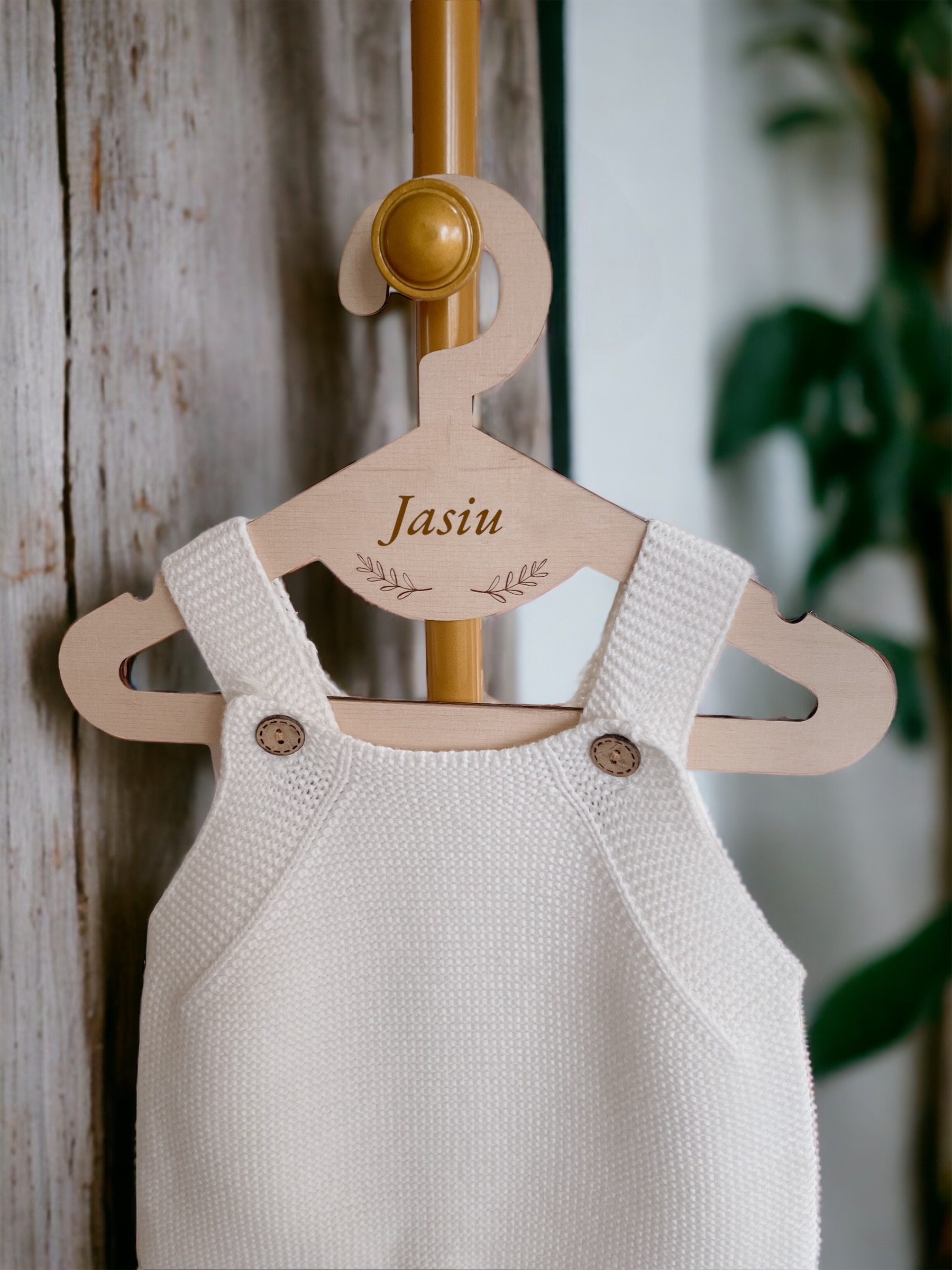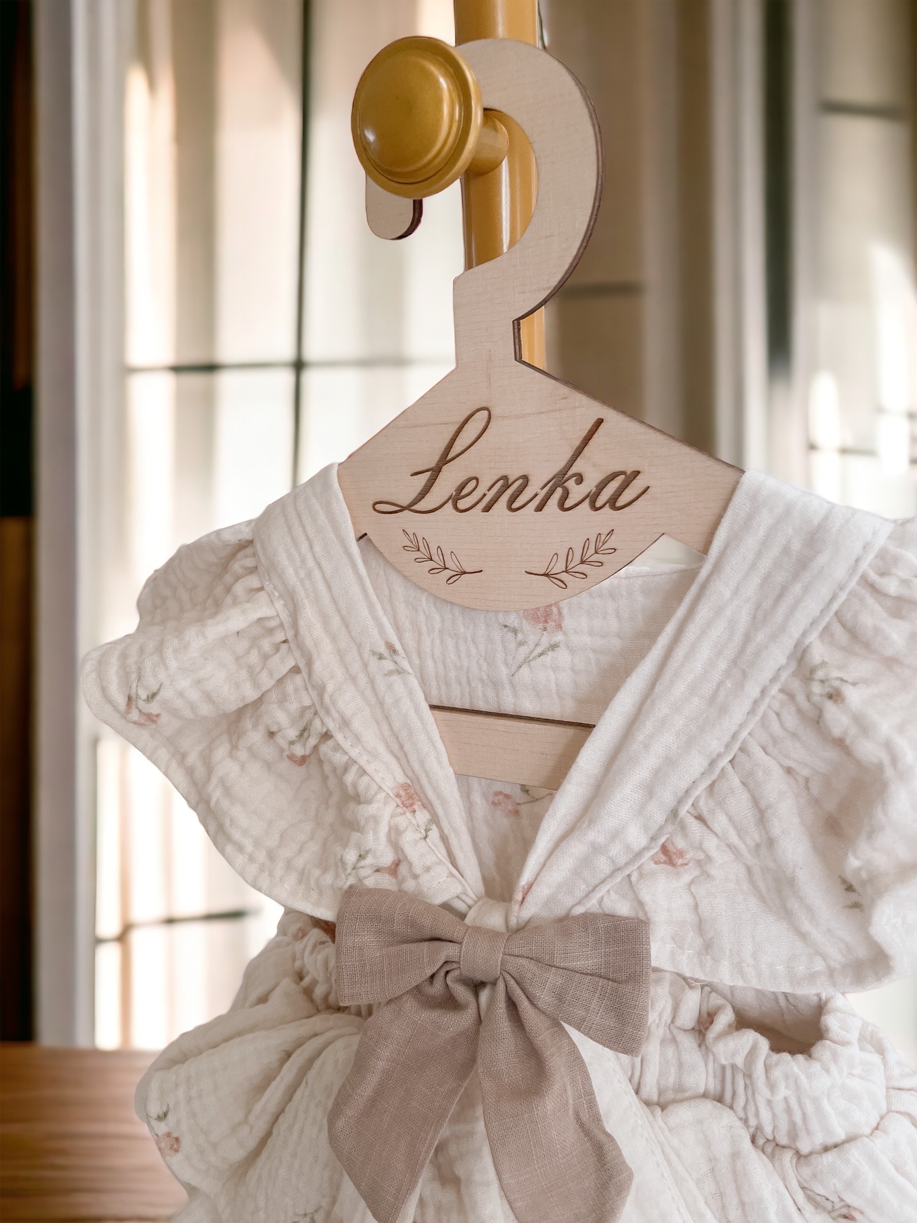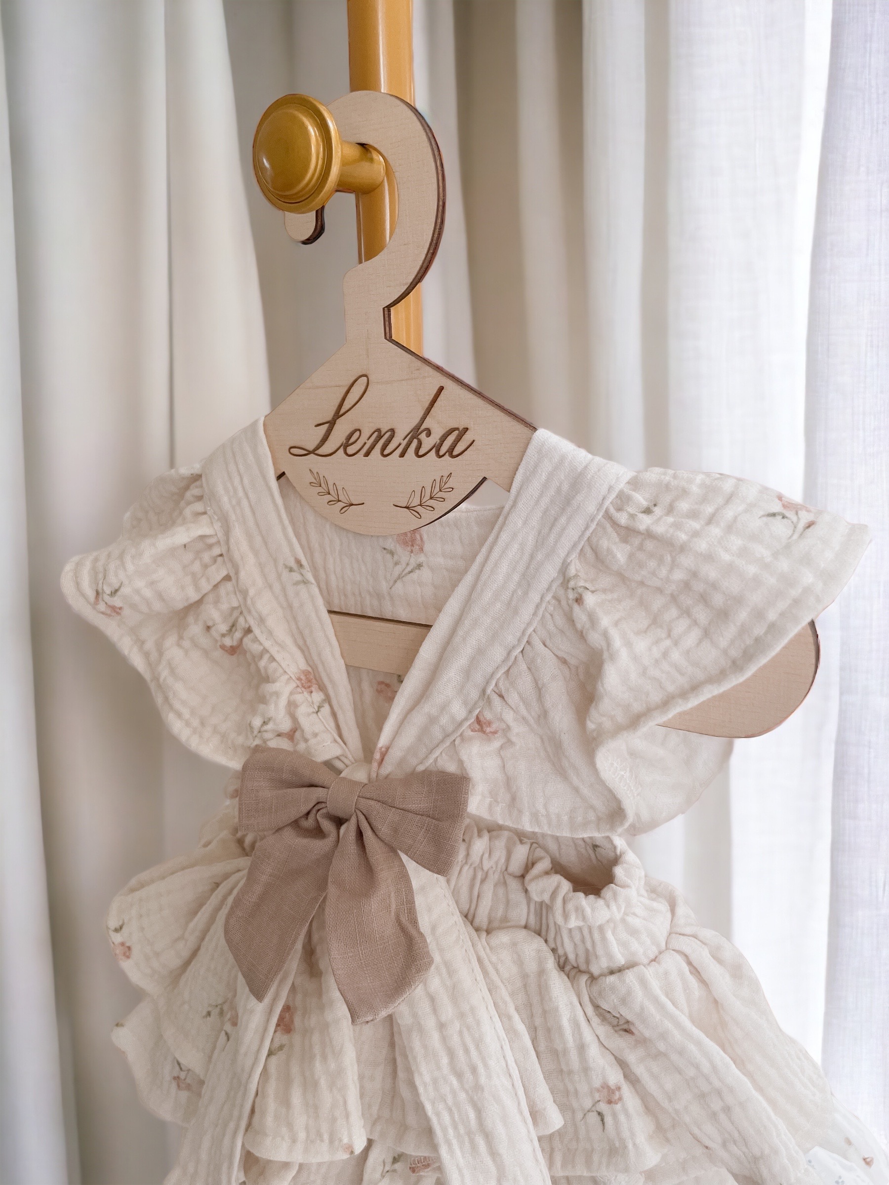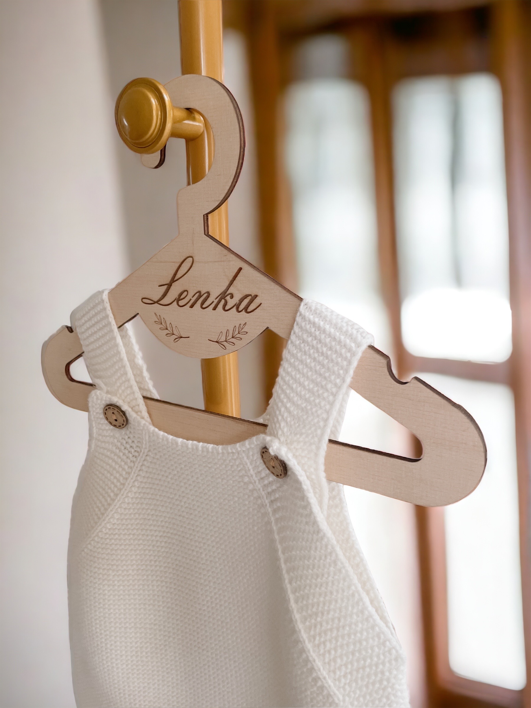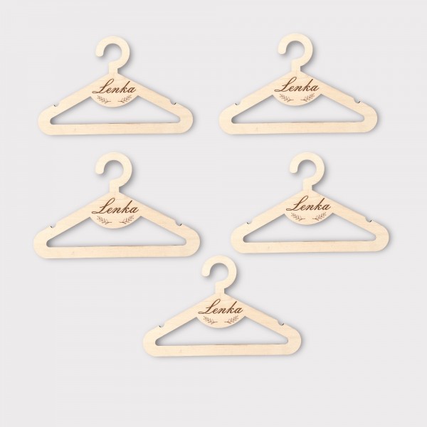 Zestaw 5 sztuk drewnianych wieszaków ze sklejki z personalizowanym grawerem.